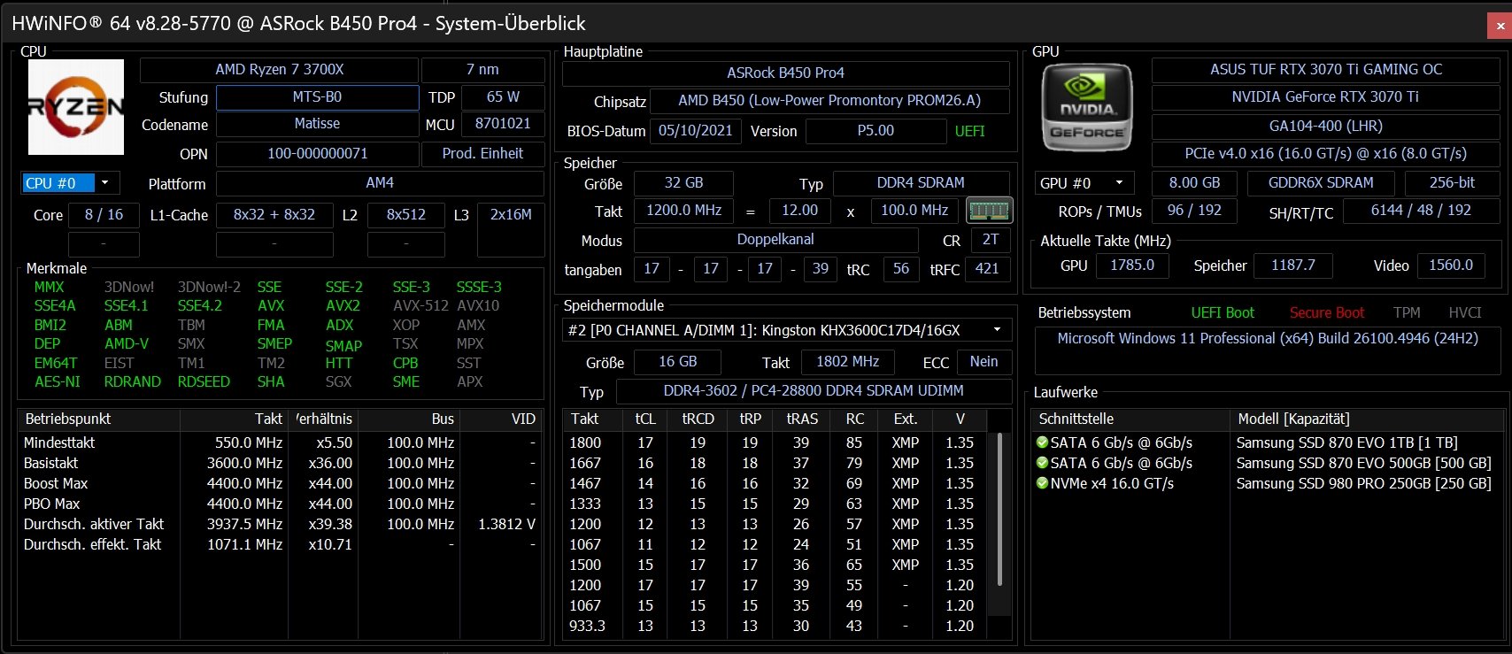 Beim Screenshot von HWiNFO fallen mir einige Dinge auf: