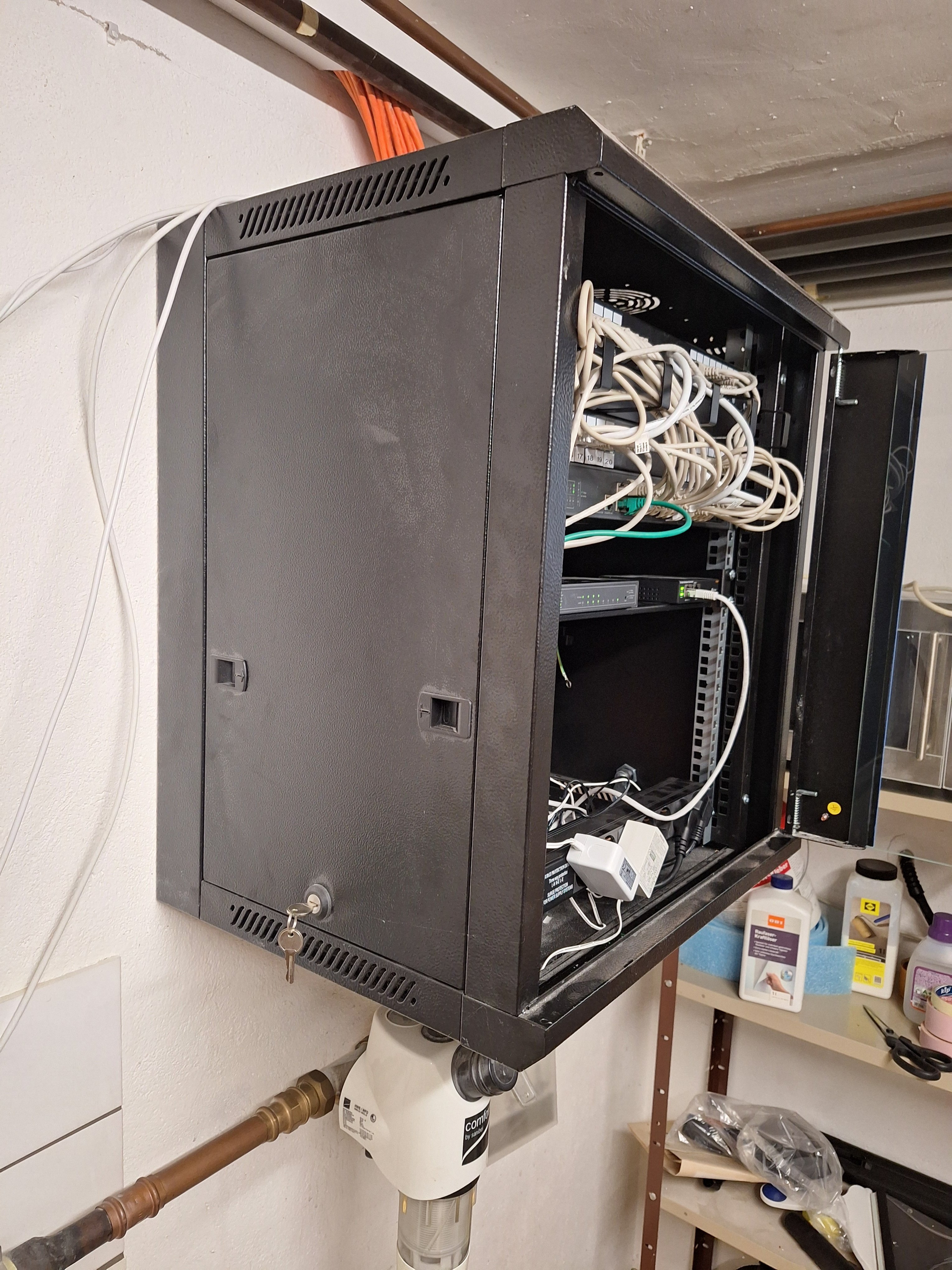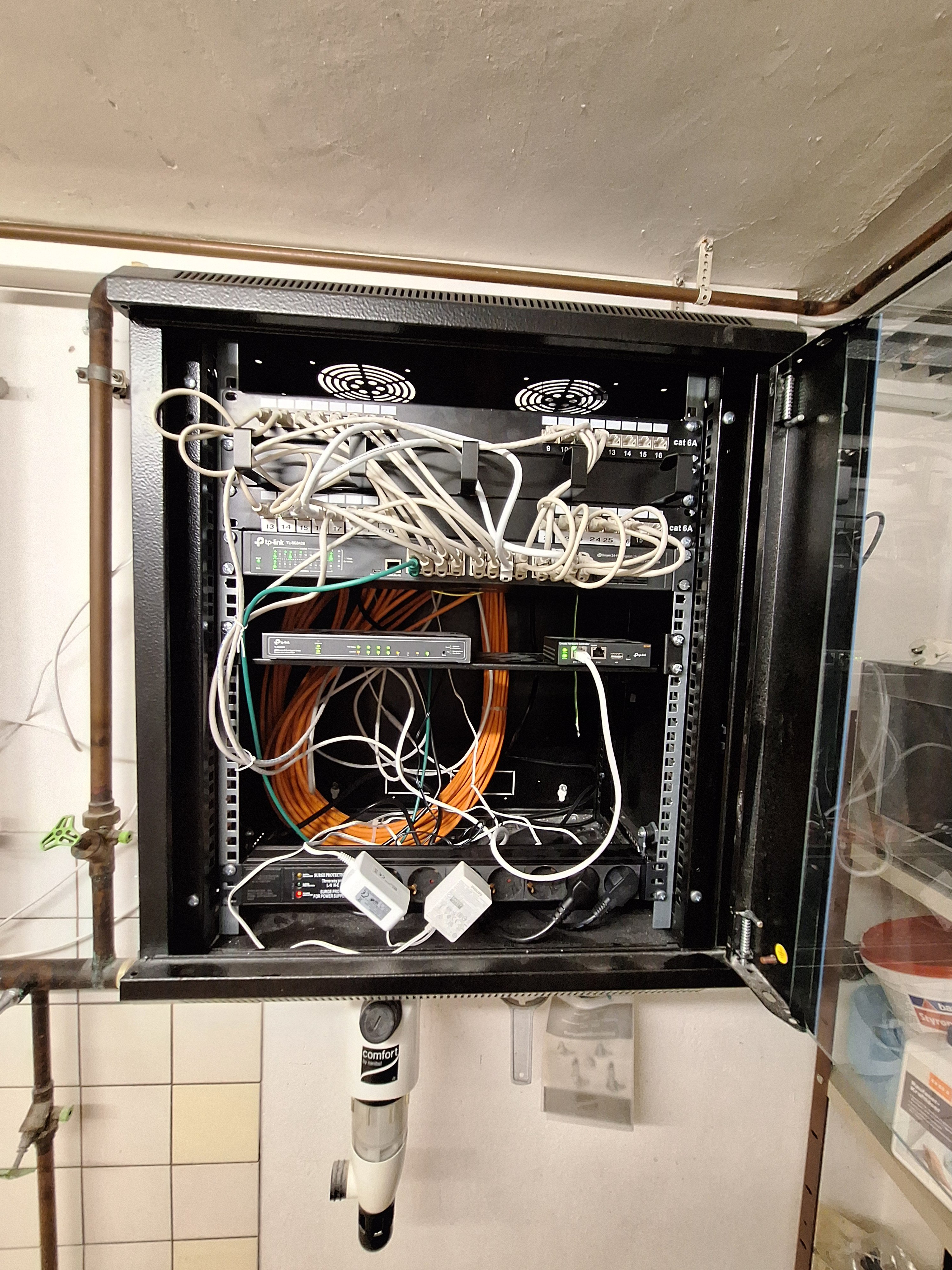 ich habe in meinem Haus wie o. g. einen Netzwerkschrank verbaut (~55H/60B/50T; Fotos bei Bedarf möglich). Bislang befinden sich dort zwei Patchpanel, ein 28er Switch (passiv gekühlt), ein 8er Switch mit POE (passiv gekühlt), ein Controller sowie eine Steckdosenleiste.