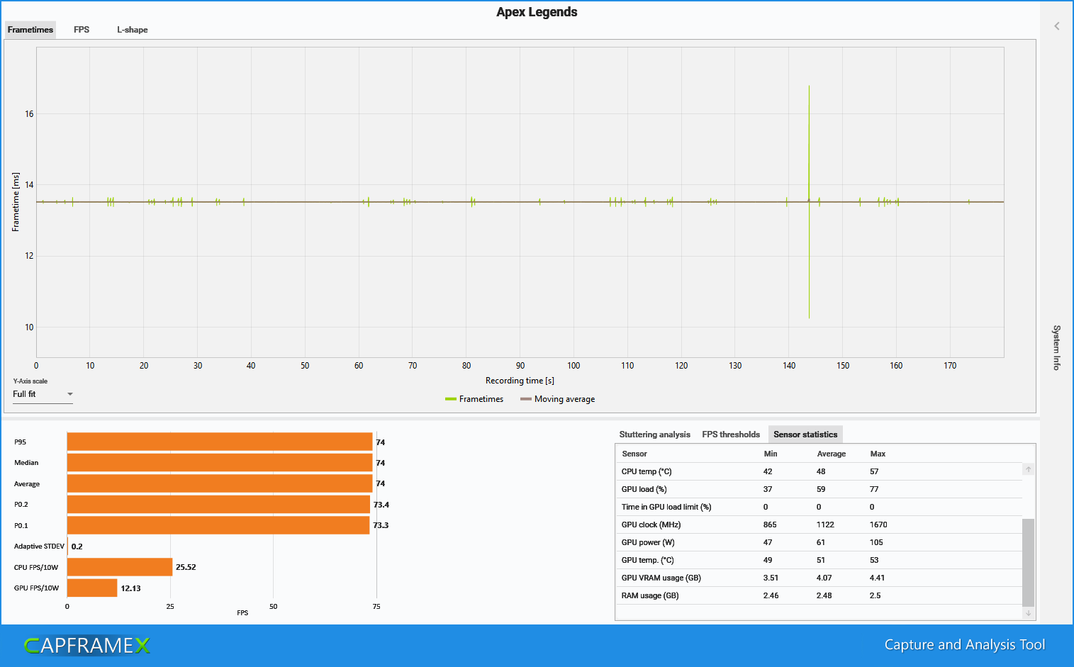 Heute is ne neue Capframe X Version zum Download erschienen. Ich habe Capframe x installiert. Hast du alles so wie im screenshot eingestellt? Die neueste RTSS Version ist auch der Hammer. Es gibt jetzt Hybrid Scanline sync (Framelimiter + Scanline sync). Da kann die Auslastung der Grafikkarte höher sein und es ruckelt nicht. Ich muss fast nichts mehr inGame reduzieren. Sau gut das Teil. Funktioniert bestimmt gut für Laptops und TV´s.