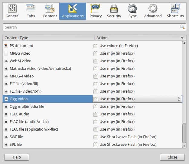 Eventuell muss man, wenn etwas nicht funktioniert, noch bei den Einstellungen für Anwendungen etwas rumwursten, auf alle Fälle sollte es am Ende so oder so ähnlich aussehen für die Formate, die man in mpv geöffnet haben will: