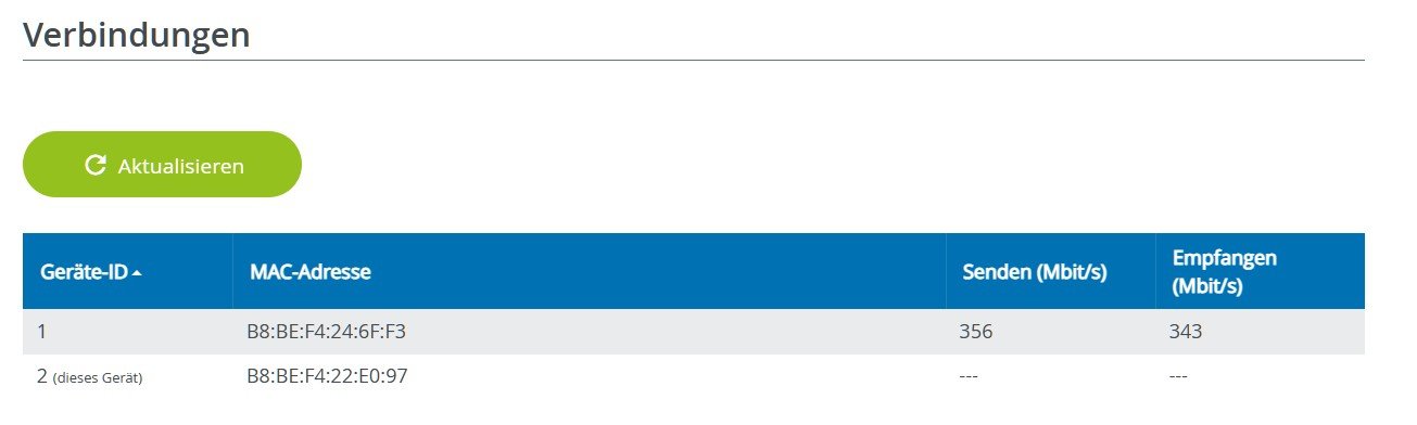 Was die WLAN-Verbreitung angeht: Vom 3000AX kommen im letzten Zimmer im ersten Stock (mit dem LAN-Kabel) noch ca. 100 Mbit/s an, und im Zimmer darunter sind es noch ca. 25 Mbit/s. Da hier vor allem Smartphones und Tablets das WLAN nutzen, um im Web zu surfen, reicht die Geschwindigkeit aus. Wir werden die Stabilität der Verbindung, insbesondere im Zimmer im Erdgeschoss, weiter beobachten. Ansonsten könnten wir uns den 1200AX vielleicht sogar ganz sparen.
