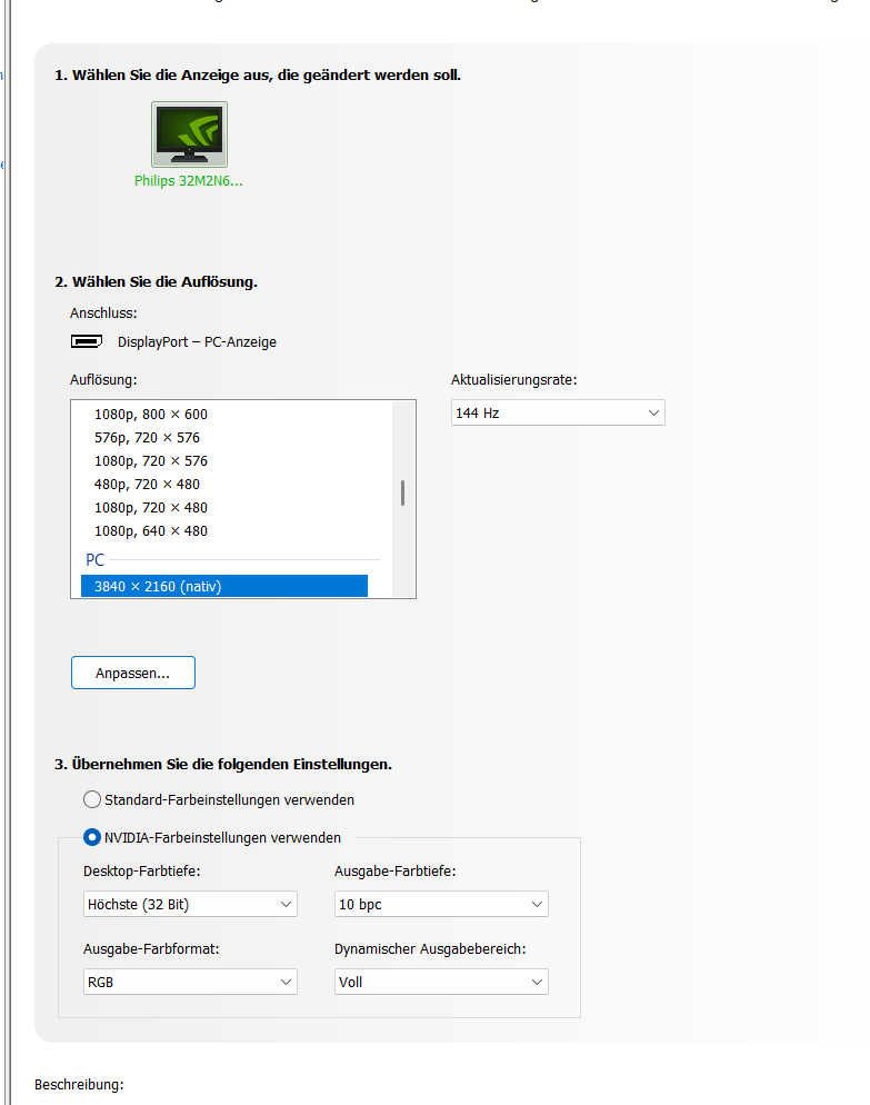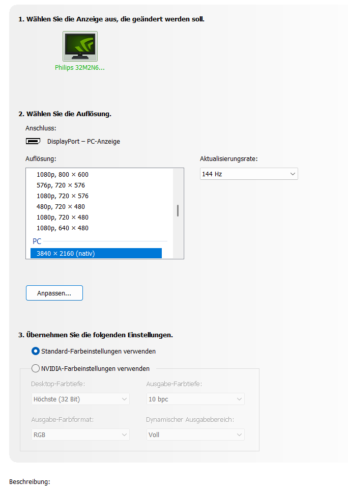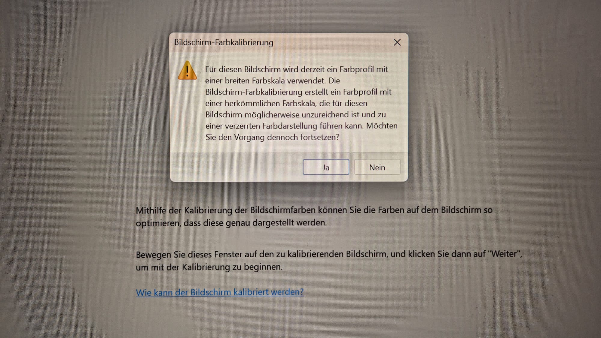 In Windows kann ich die Bildschirm Farbkalibrierung auch nicht durchführen (siehe Anhang).