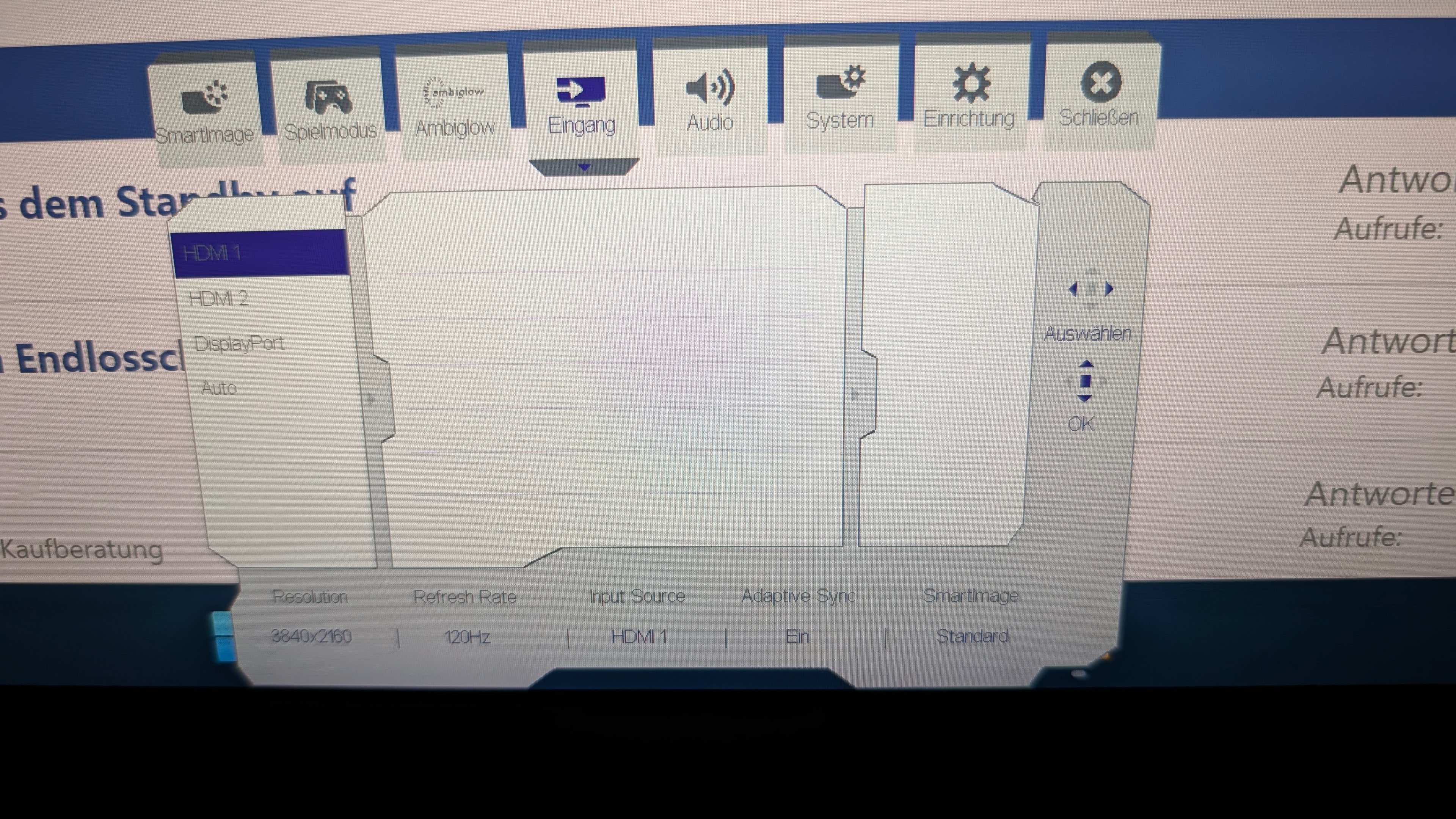 Wie kannst du Auto aktivieren wenn der Eintrag im OSD für Eingänge bei dir gar nicht auftaucht ? Im Precision Center ?MGFirewater schrieb:Auch mit aktivem Auto taucht der Eintrag im osd für Eingänge nicht auf. Werde beobachten und berichten ob das anschalten geholfen hat