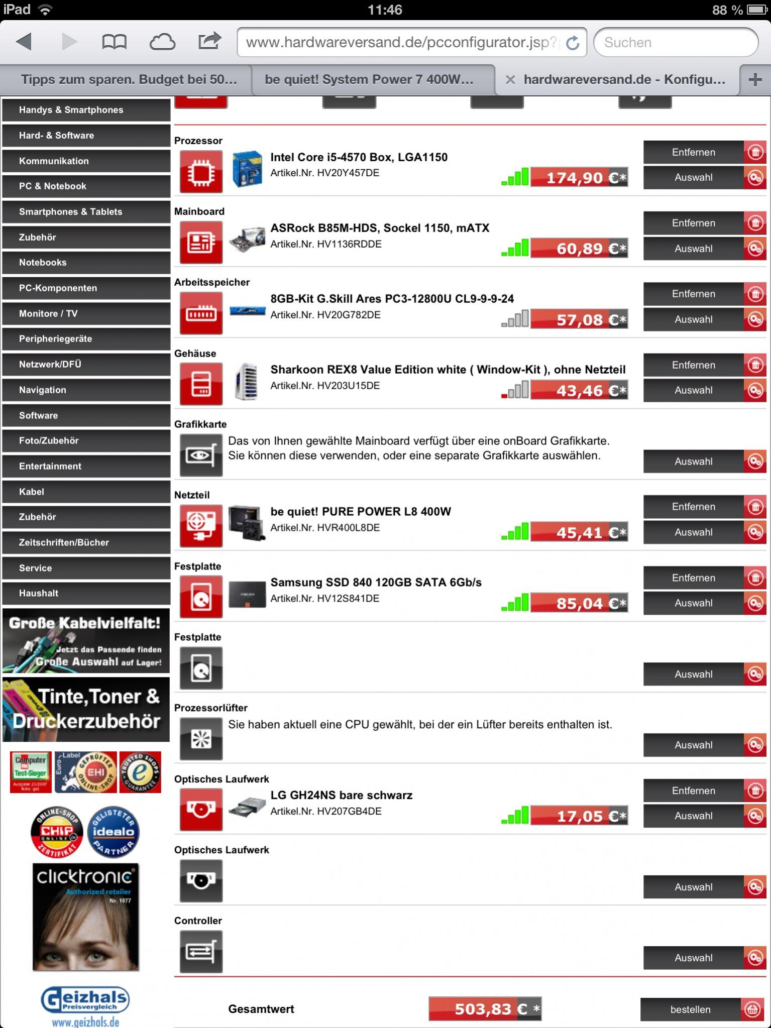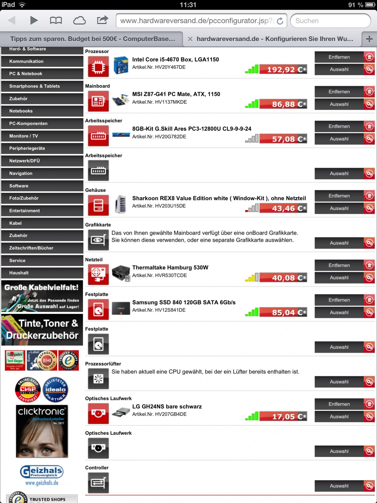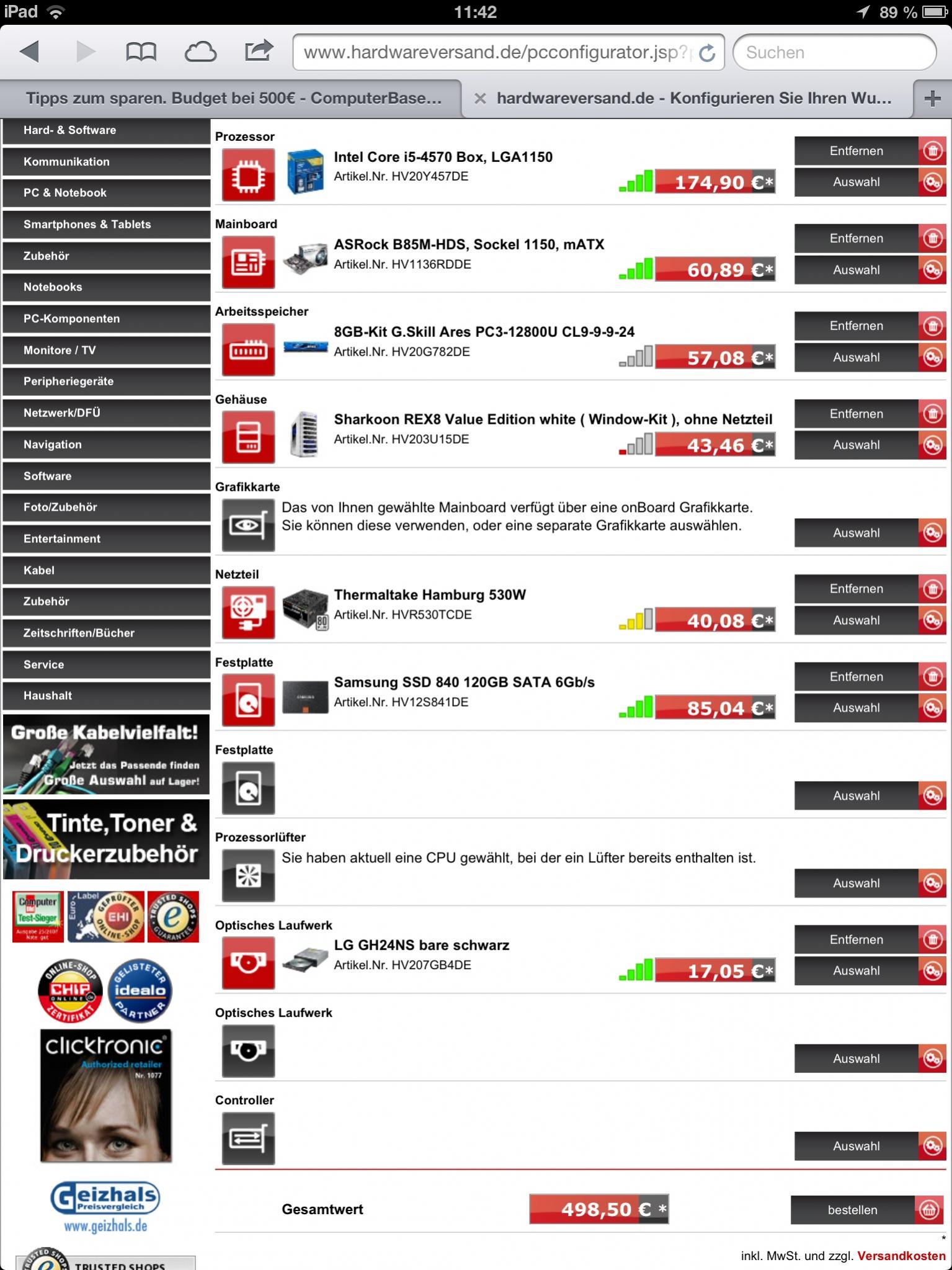 Sie haben aktuell eine CPU gewählt, bei der ein Lüfter bereits enthalten ist.