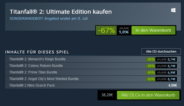 Als beliebtes Tag bei Steam für Titanfall 2 steht ja ganz vorne