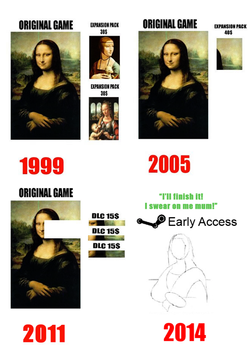 Ist irgendwie passend bei EA, das ganze. Spiel + DLCs. Aber vielen macht das Spiel wohl spaß (ich selbst habs bei meinem Bruder mir angesehen, hatte zwar nen Beta-Key, aber nicht genutzt), mich hats aber weniger überzeugt. Matches die in 4-5 Minuten vorbei sind, ein übertrieben schnelles Gameplay (dafür kann man auch Quake Live spielen) und dazu, dass sie Mechs nicht wirklich Spielentscheidend sind/was am Gameplay groß ändern... das alles hat mich nicht wirklich überzeugt.