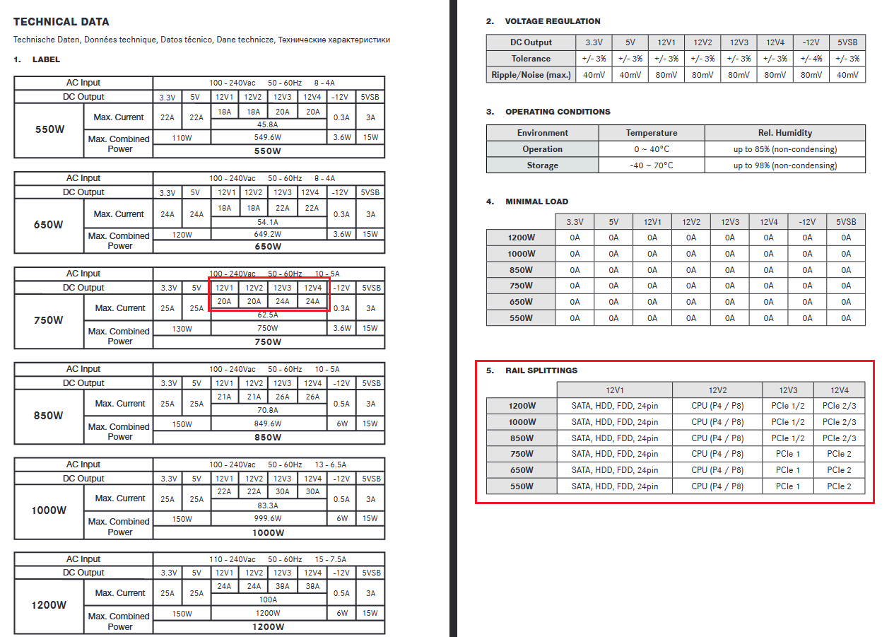 Das ist mein Netzteil, da steht jetzt im Handbuch nichts von verschiedenen Rails..