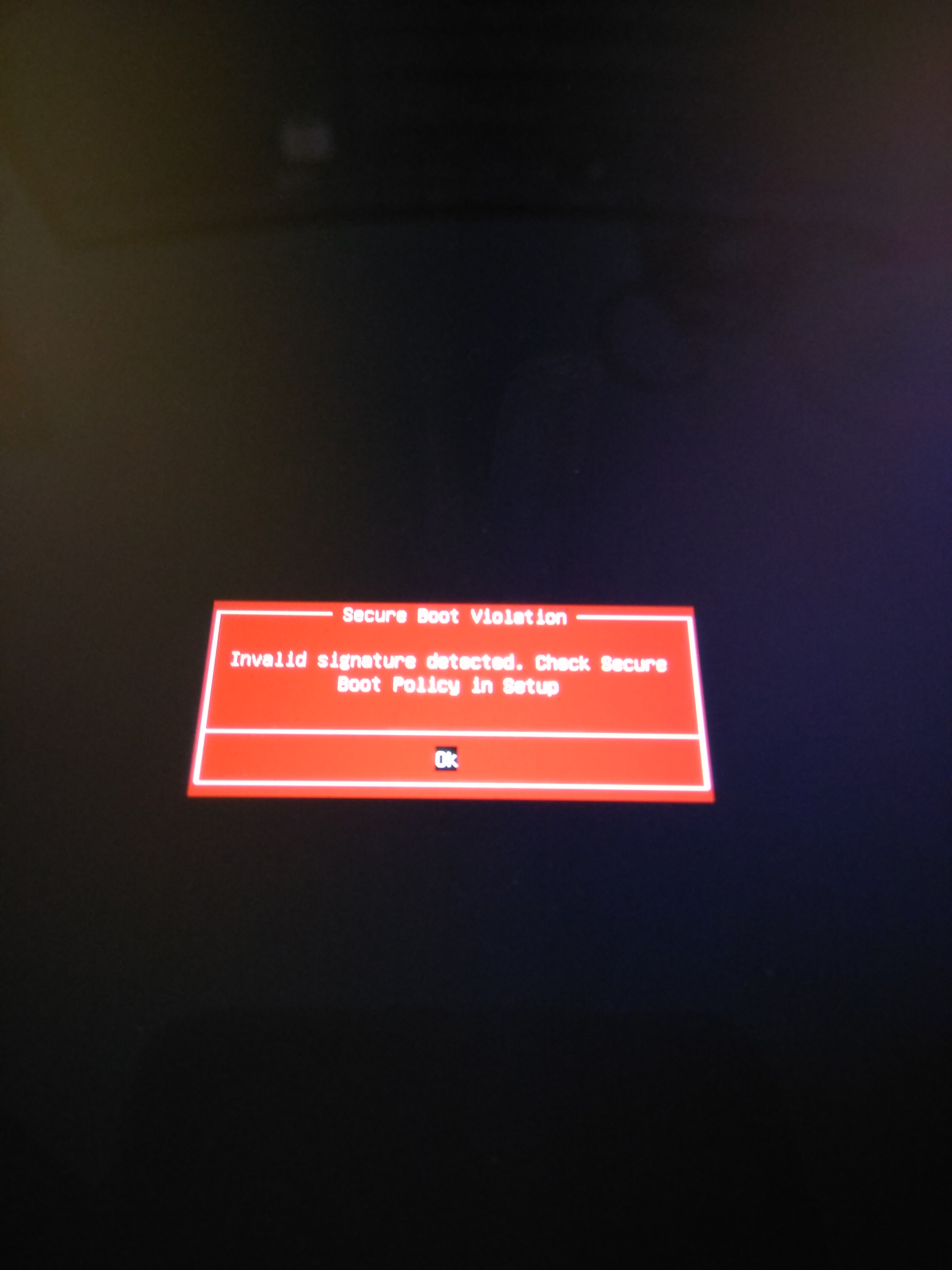 "Secure Boot Violation - Invalid signature detected. Check secure Boot Policy in Setup"