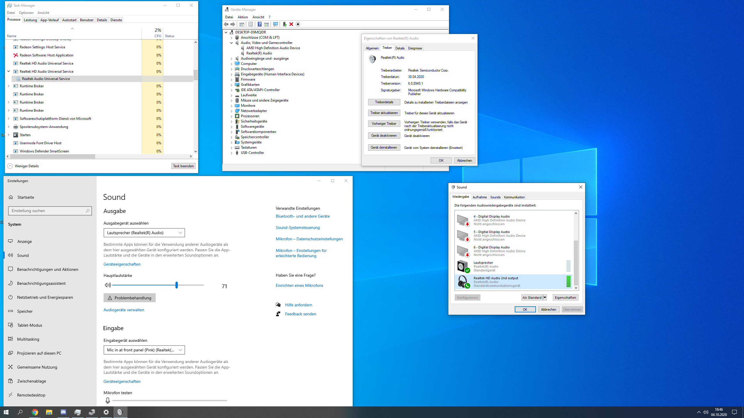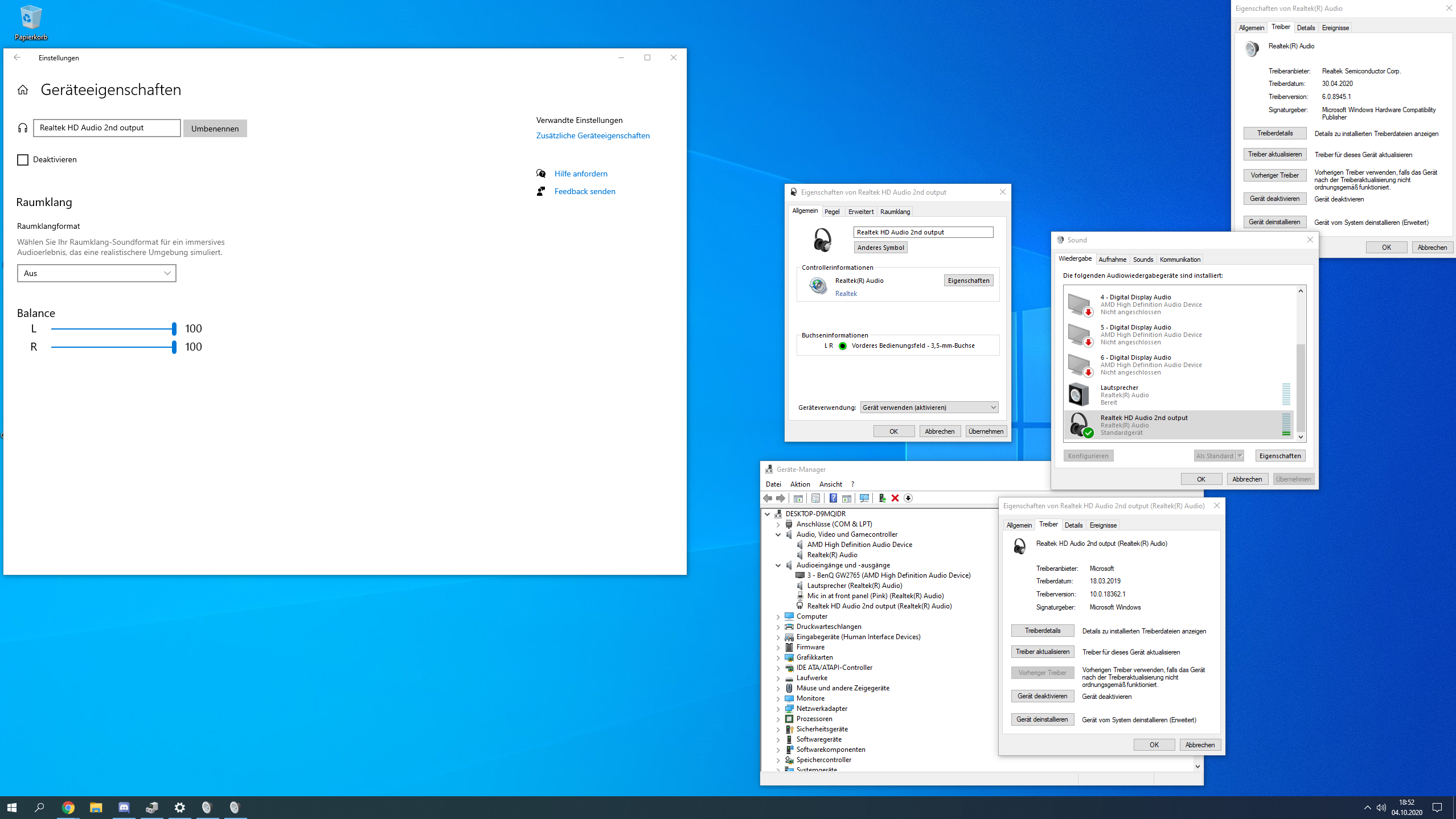 Audio: Realtek HD Universal Driver Version 6.0.8945.1, Realtek High Definition Audio Driver Version 6.0.1.8703, R282, R281 und AMD High Definition Audio Device