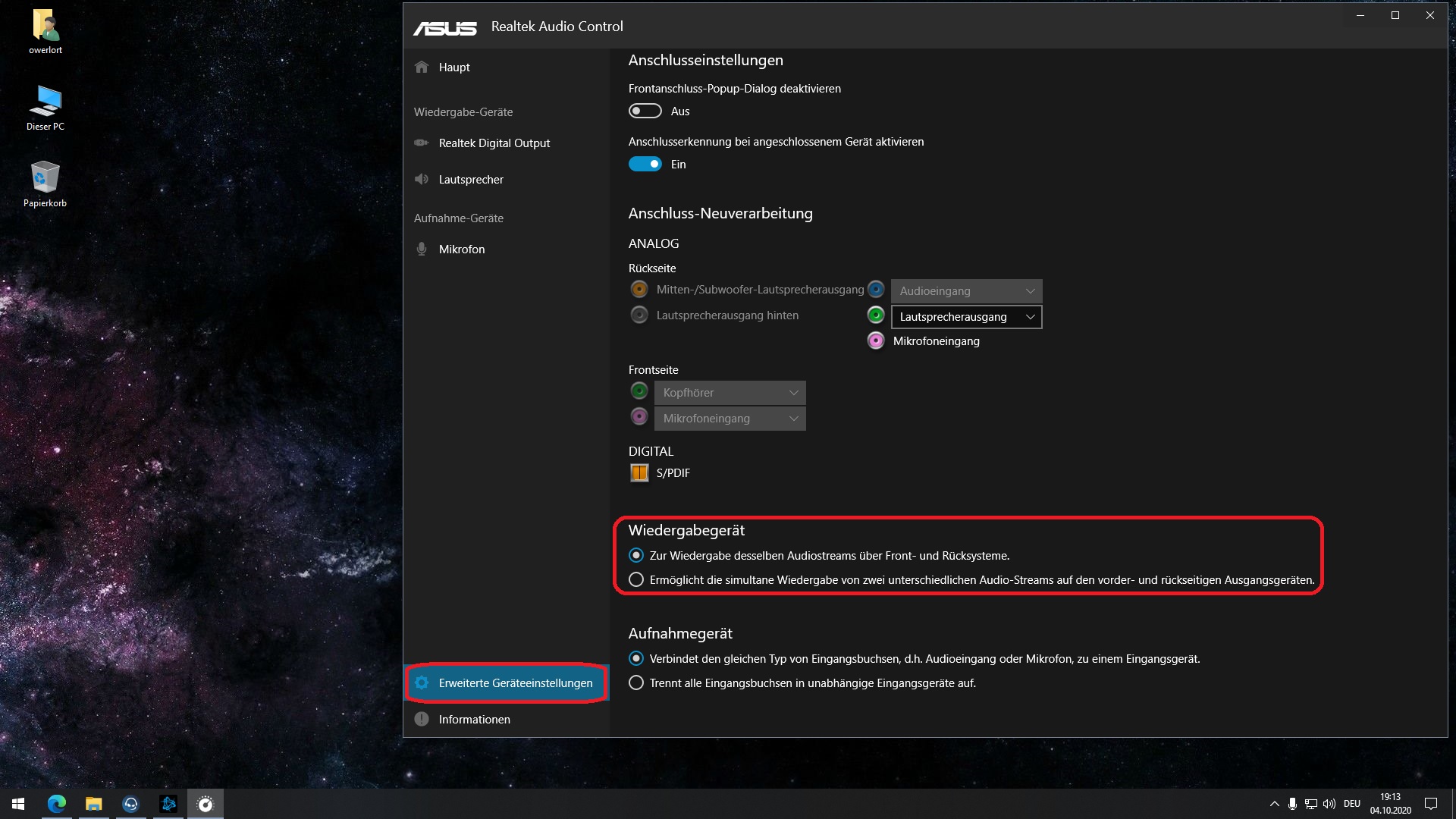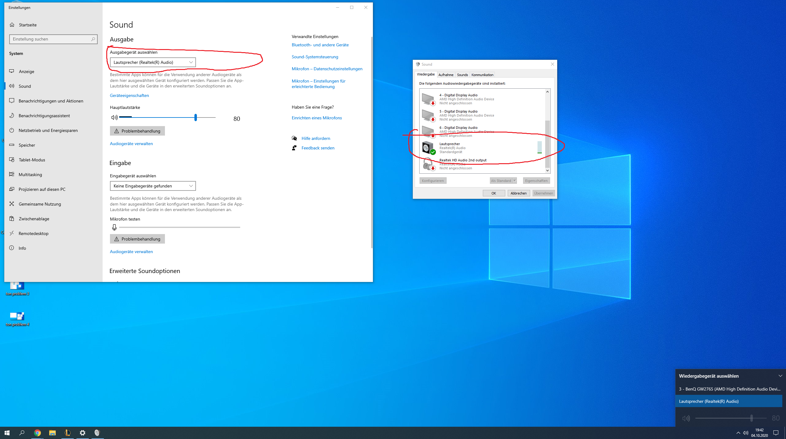 Ich habe gestern meine Grafikkarte auf den oberen Steckplatz umgesetzt, seitdem funktioniert der Sound nicht mehr nur über den Bildschirm (Displayport).