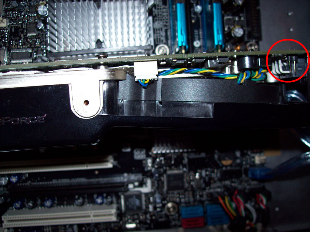 Meine Frage ist jetzt, wo ich diesen Anschluß zum Einspei0ßen auf der Platine finde. Ich habe zwar hinten neben dem Stromanschluß der Karte so einen 2-Pin Pfosten, allerdings steht da nix groß da. Will ja nicht auf gut Glück irgendwas anschließen.