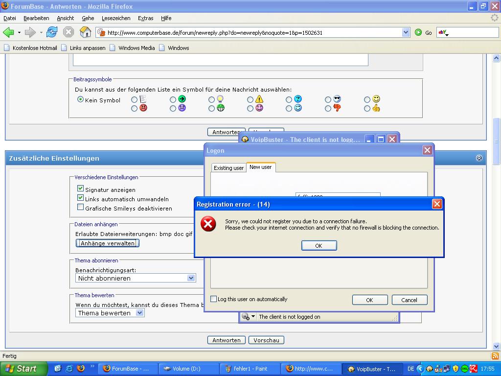 tja also bei mir funkt des ned ganz. ich habe mich zwar schon regestriert, E-Mail habe ich auch und bei meiner Account-Page haben Sie auch meine Daten, aber die eine Minute kann ich nicht austesten. "Call ended (Not enough credits (5))" Sie bieten die freie Minute aber nach wievor auf der HP an.