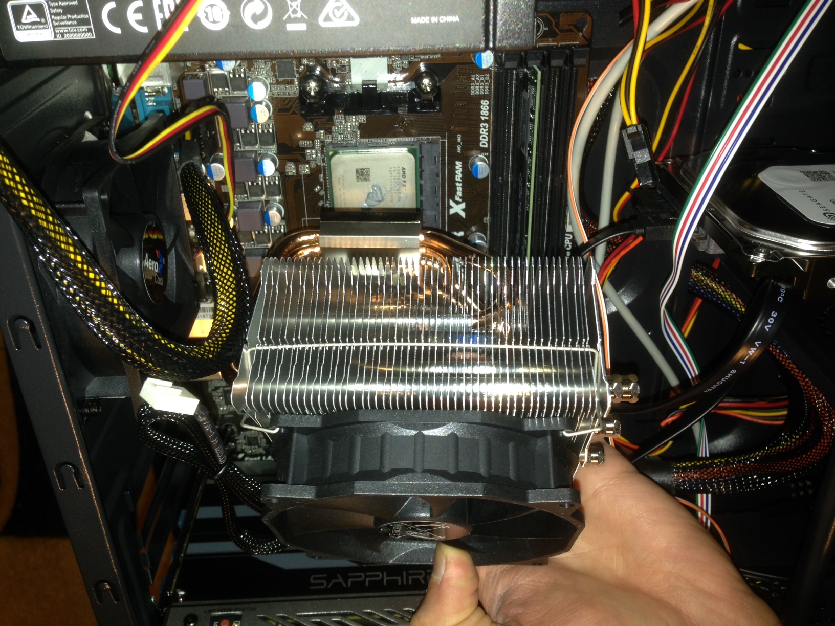 Ich würde das so reinsetzten, dass der Bronze-teil richtung RAM Riegel zeigt, damit auf der anderen Seite die Spannungswandler Luft bekommen. Aber da steht jedoch der Gehäuselüfter im Weg. Soll ich den abmontieren? Hat jemand einen Rat? Bin am verzweifeln langsam..
