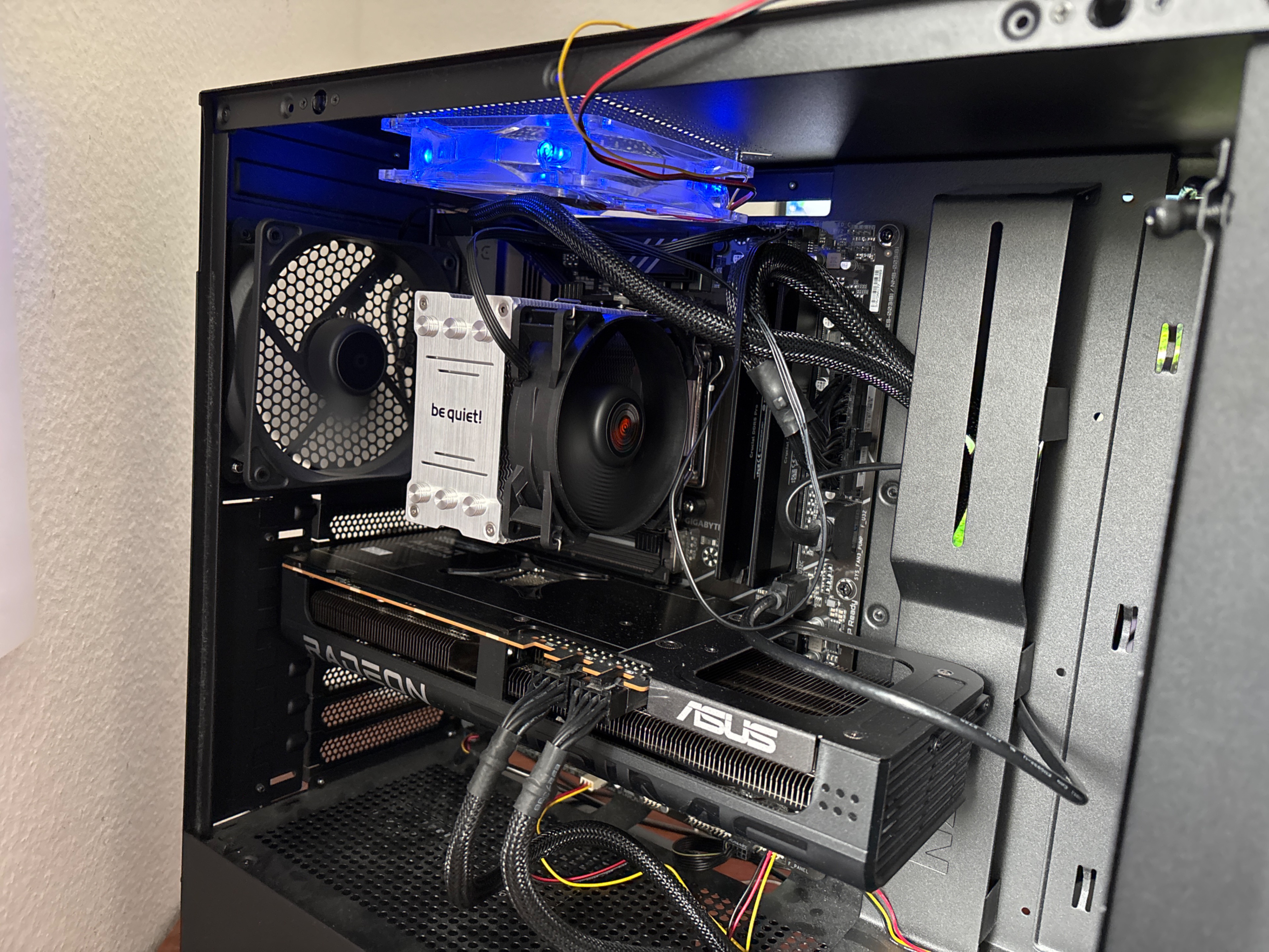 Macht es mehr Sinn bei diesem Setup den Top blauen Gehäuse Lüfter so zu montieren das er die Luft rauszieht oder reinbringt von außen?