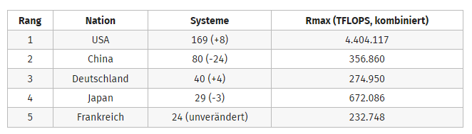 Wenn man dem verlinkten Artikel von 2021 glaubt bezüglich der Leistungsaufnahme, spielen die chinesischen Systeme in einer sehr ähnlichen Effizienz-Liga. Der Vergleich ist bei solchen Systemen immer etwas schwierig, da man auch Kühlung, Netzwerk, etc. einbeziehen muss, aber einen großen Vorteil für westliche Systeme sehe ich erstmal nicht.