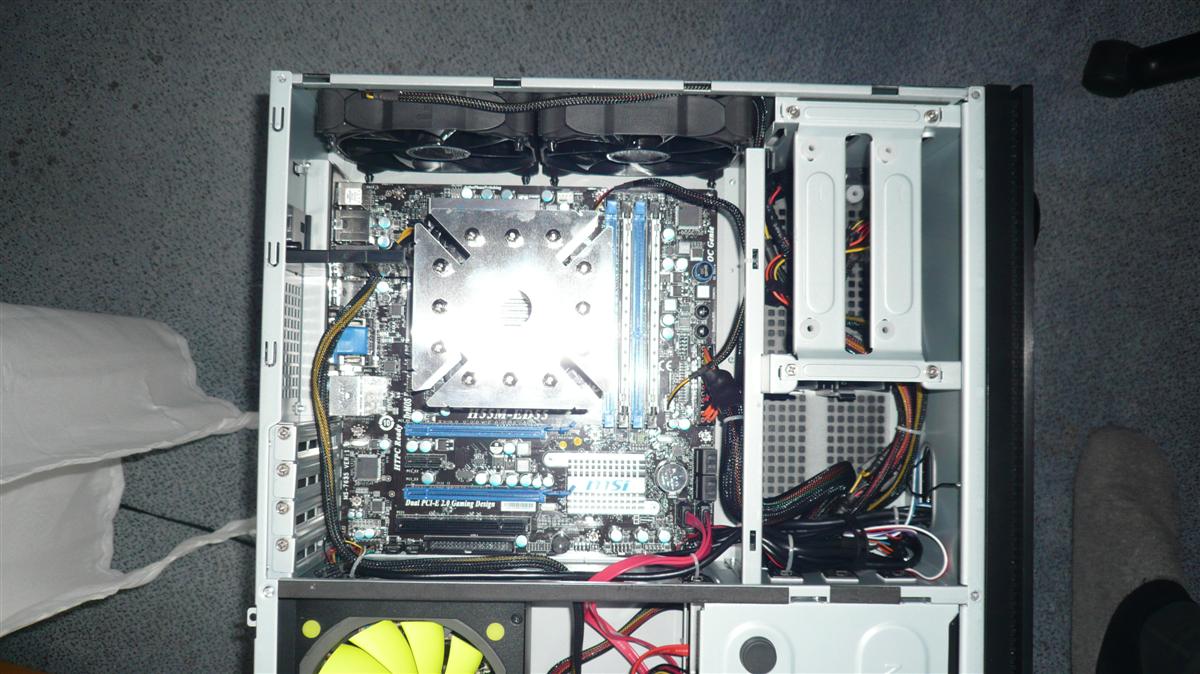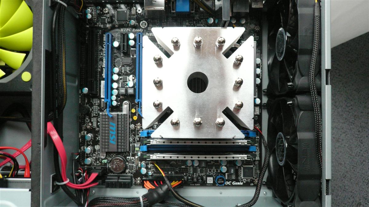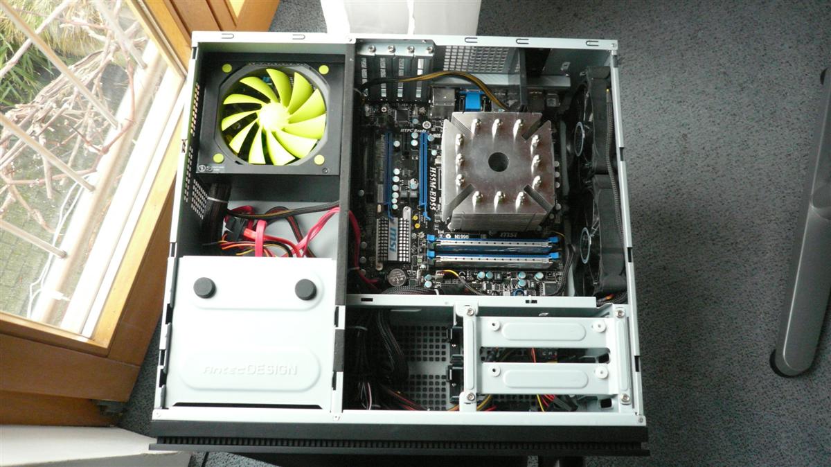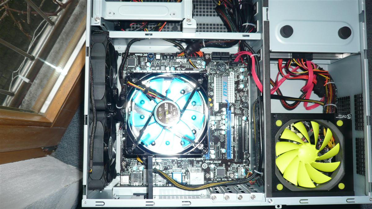 P.S.: Beim letzten Bild habe ich einen 120x120x25mm-Lüfter auf den CPU-Kühler gelegt, um einen Topblower zu simulieren