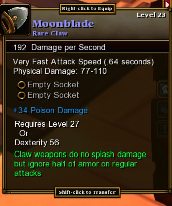 @Aramis: Hier mal mein Char. Ich habe bei dem relativ viele Boni, der Schaden vom Glaive Throw (Crit= 10K) ist schon nicht mehr feierlich, die Waffen critten mit 5-6K. Übrigens hilft da der Stärkewert sehr viel. Habe durch Gegenstände 102 Bonus auf Stärke.