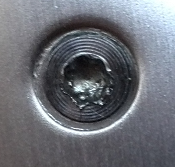 Ich habe mal Bilder zu dem Elend gemacht. Die Mittlere sieht noch ganz gut aus. Das ist die, bei der sich das Gewinde herausgelöst hat, anstelle, dass sich die Schraube im Gewinde drehte ...