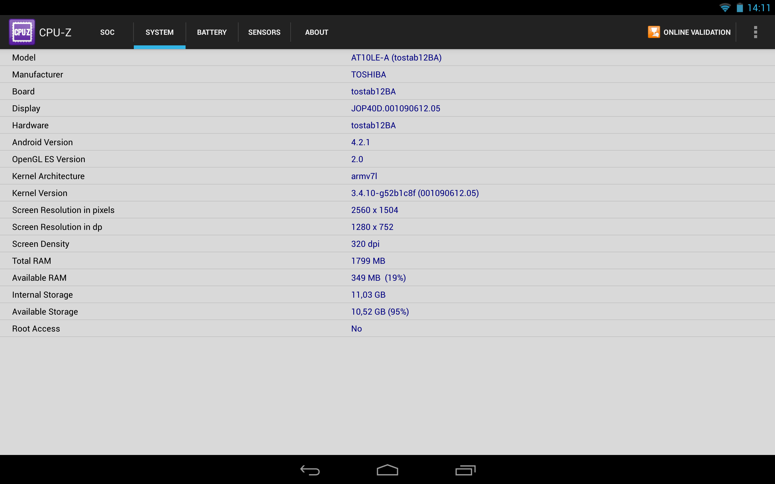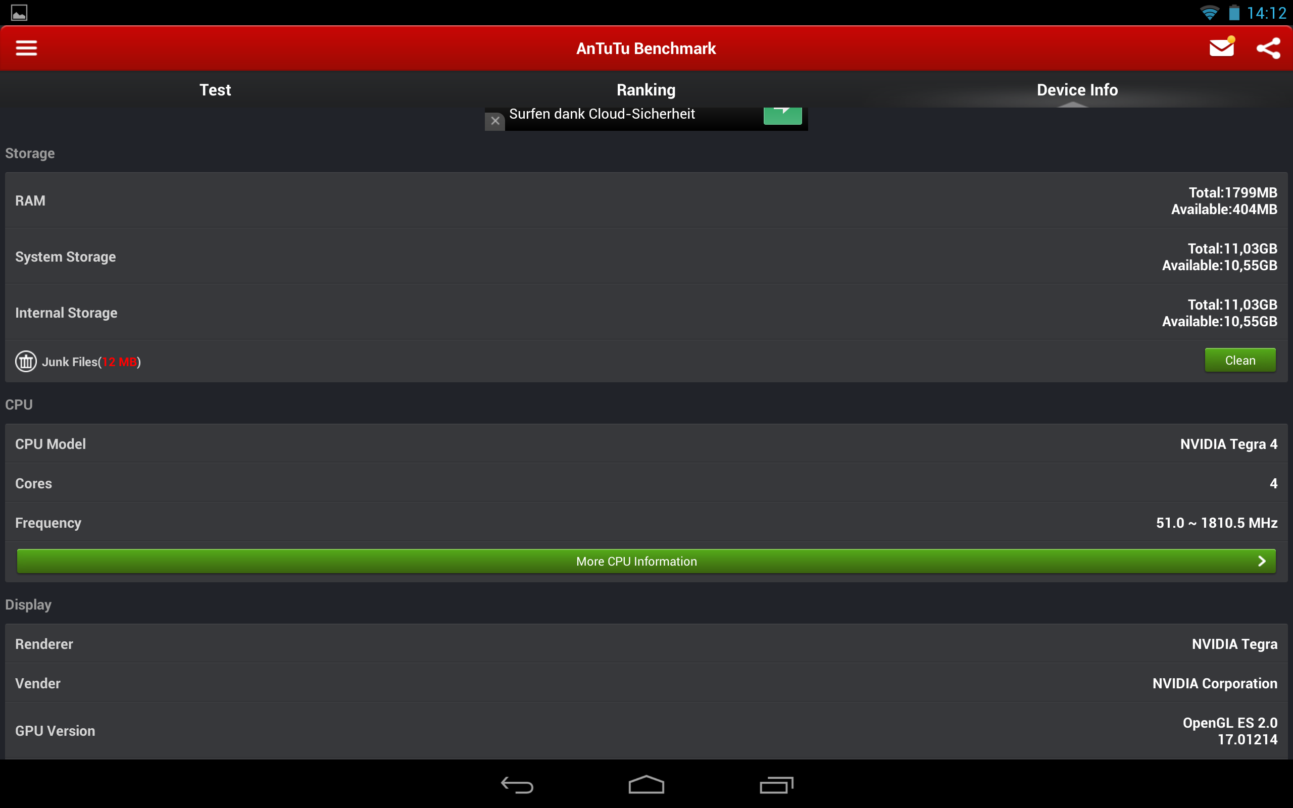 Das Tab Toshiba AT10LE-A 108 soll laut Hersteller Angaben 2GB haben, mir stehen nur 1,8 zu Verfügung. Beim internen Speicher ist das noch nachvollziehbar da evt. Noch recovery Daten installiert sind. Statt 16 nur 11GB insgesamt.