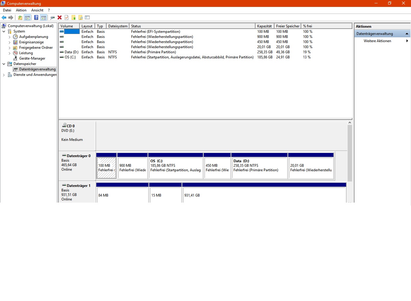 Auf eigene Faust habe ich dann noch herum experimentiert und versucht die ersten 2 Bereiche der Festplatte (84 MB + 15 MB) zu erweitern (Volumen erweitert). Warum? Da wichtige Dinge auf der Platte sind und ich allmählich verzweifele. Wieso die beiden überhaupt existieren, weiß ich auch nicht! :/