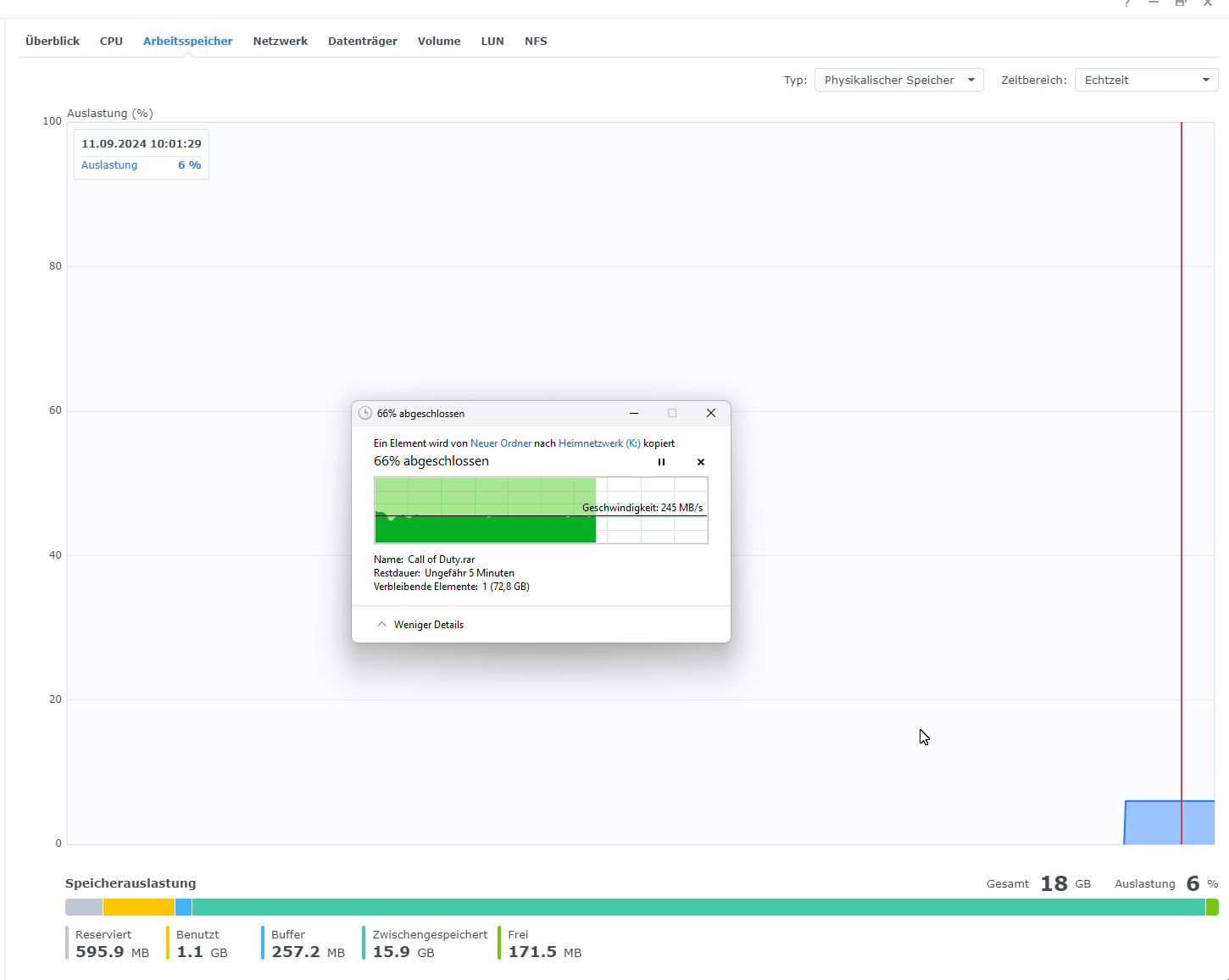 Habe es jetzt aber genauer austesten wollen und habe ein Verzeichnis mit der Installation von COD mit 220 GB als RAR-Datei gepackt und mal testweise auf meine NAS kopiert. Das mit dem Cache hatte ich mir auch bereits gedacht, aber noch nicht ausgiebig ausgetestet.