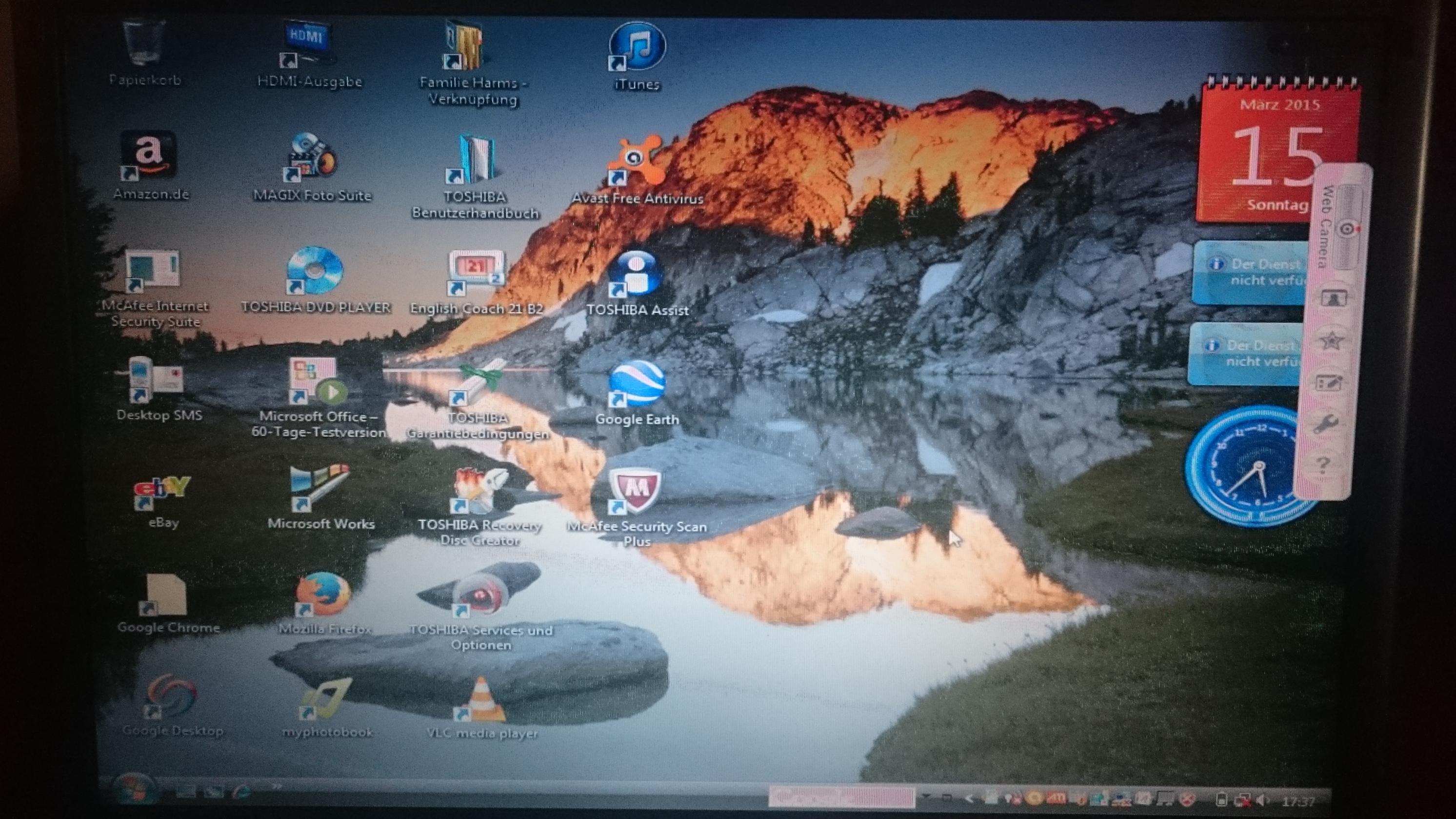 Patient ist ein Toshiba Satellite P300-23M. Probleme macht das Display (siehe Bild!)