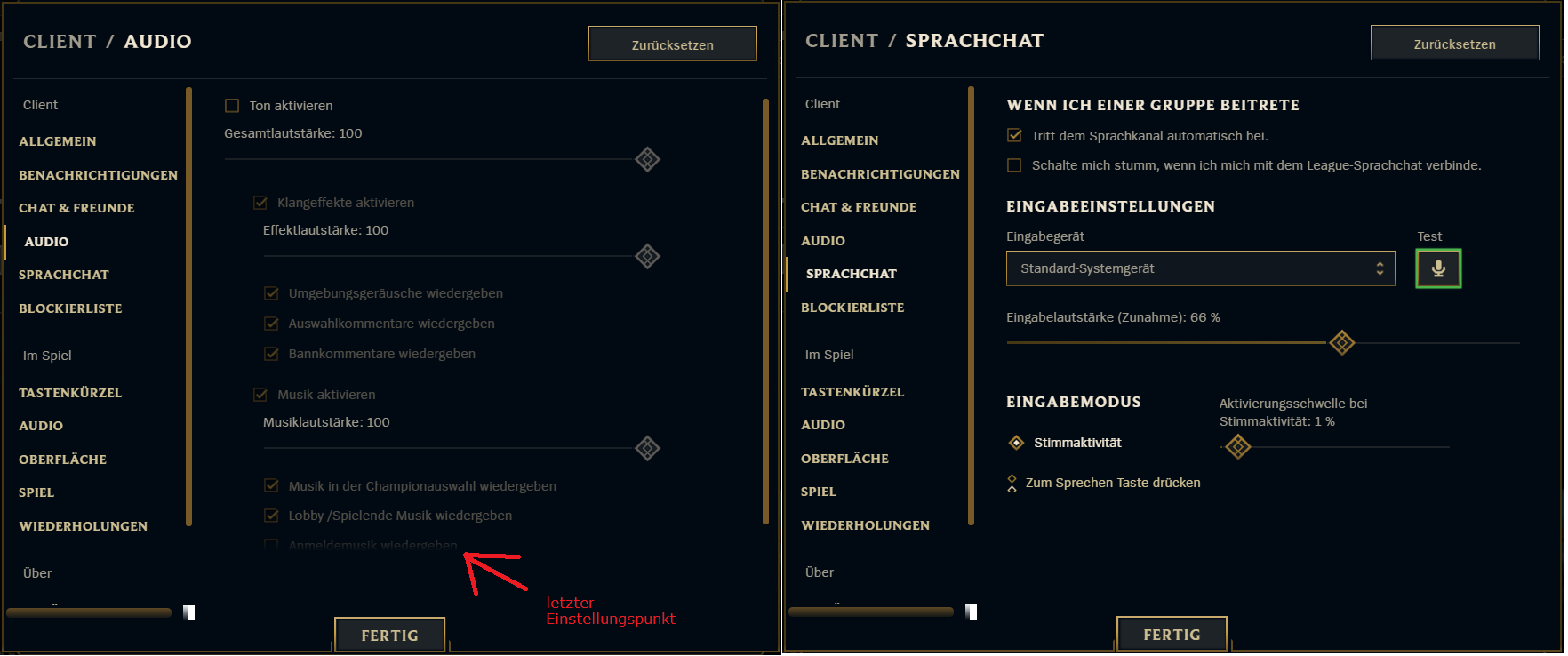 - LoL-Client Audio Einstellungsmöglichkeiten