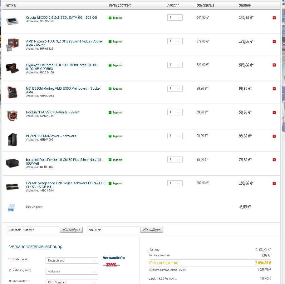 jann91 schrieb:Hallo, danke für den Tipp. Das stimmt, da das bei CaseKing mitunter länger dauert habe ich jetzt genug Zeit mich einzulesen und mich in ruhe nochmal zu Entscheiden![]()