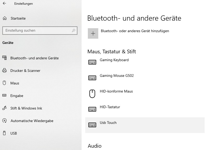Das einzige sinnvolle, was ich in der Liste für Maus, Tastatur, Stift sehe, ist Usb Touch.