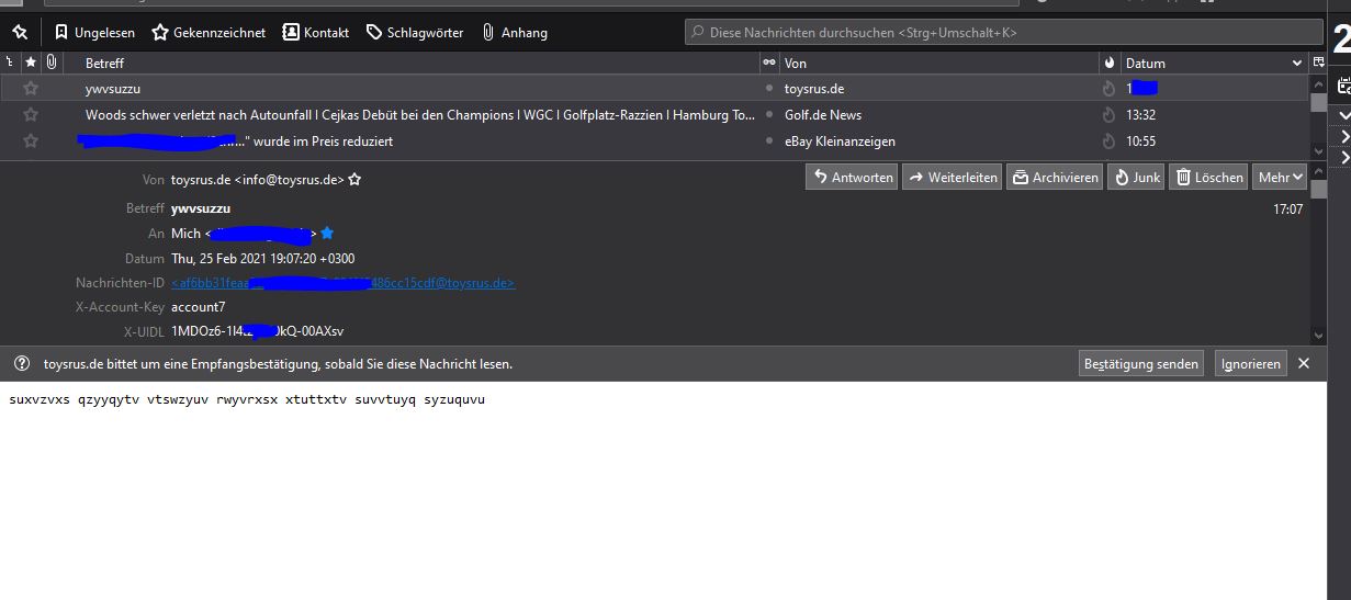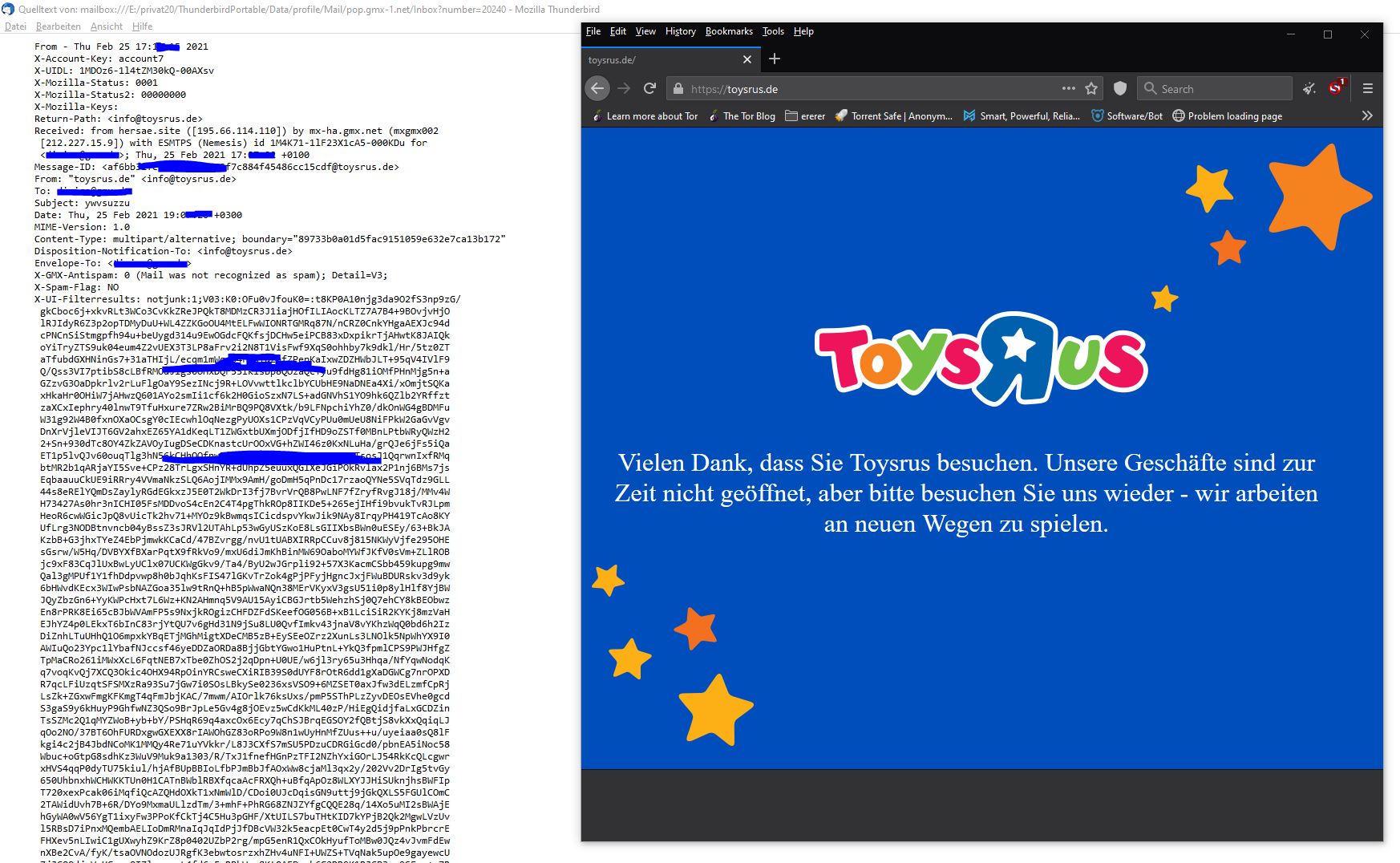 Aber offensichtlichh bertreiben sie noch spärlich die toysrus.de. Wie auch immer. Mail löschen und gut ist.