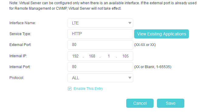 Normalerweise stelle ich ja im Router ein, dass, wenn eine Anfrage auf Port 80 kommt ( 443 lassen wir mal außer acht ) die Anfrage auf den Webserver weitergeleitet wird ( Regel bei Archer MR200: siehe Screenshot ). Ich komme aber leider nicht drauf..... hab schon semtliche Websites nach einer Lösung durchsucht, aber immer wieder wird gesagt, dass ich mit der WAN Ip draufkommen sollte... ich bin davon ausgegangen, dass die WAN IP die gleich ist, wie wenn man auf z. B. myip.is geht?