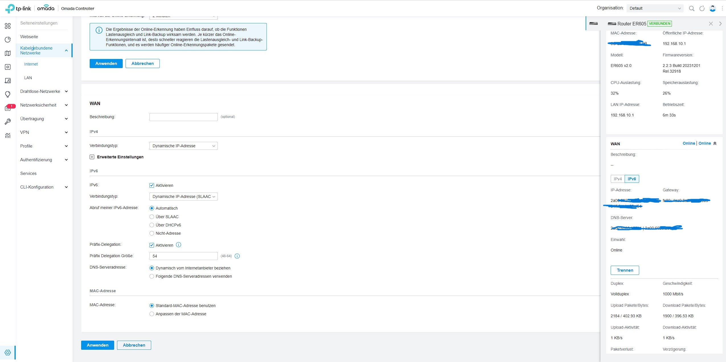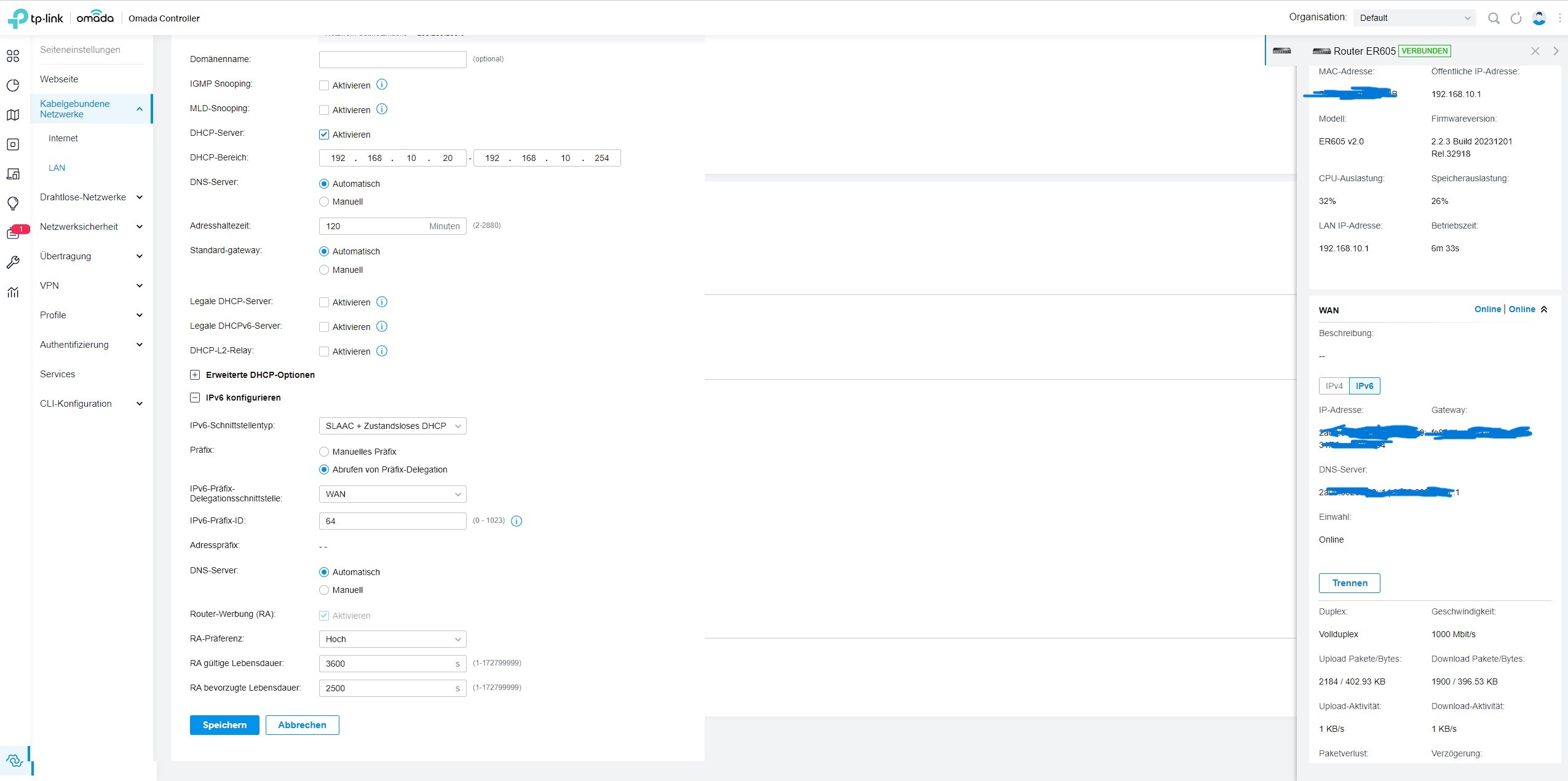 Allerdings bekommen die Clienten hinter dem TP-Link ER605 keine ipv6 Adresse zugewiesen und ich weiß nicht genau warum.