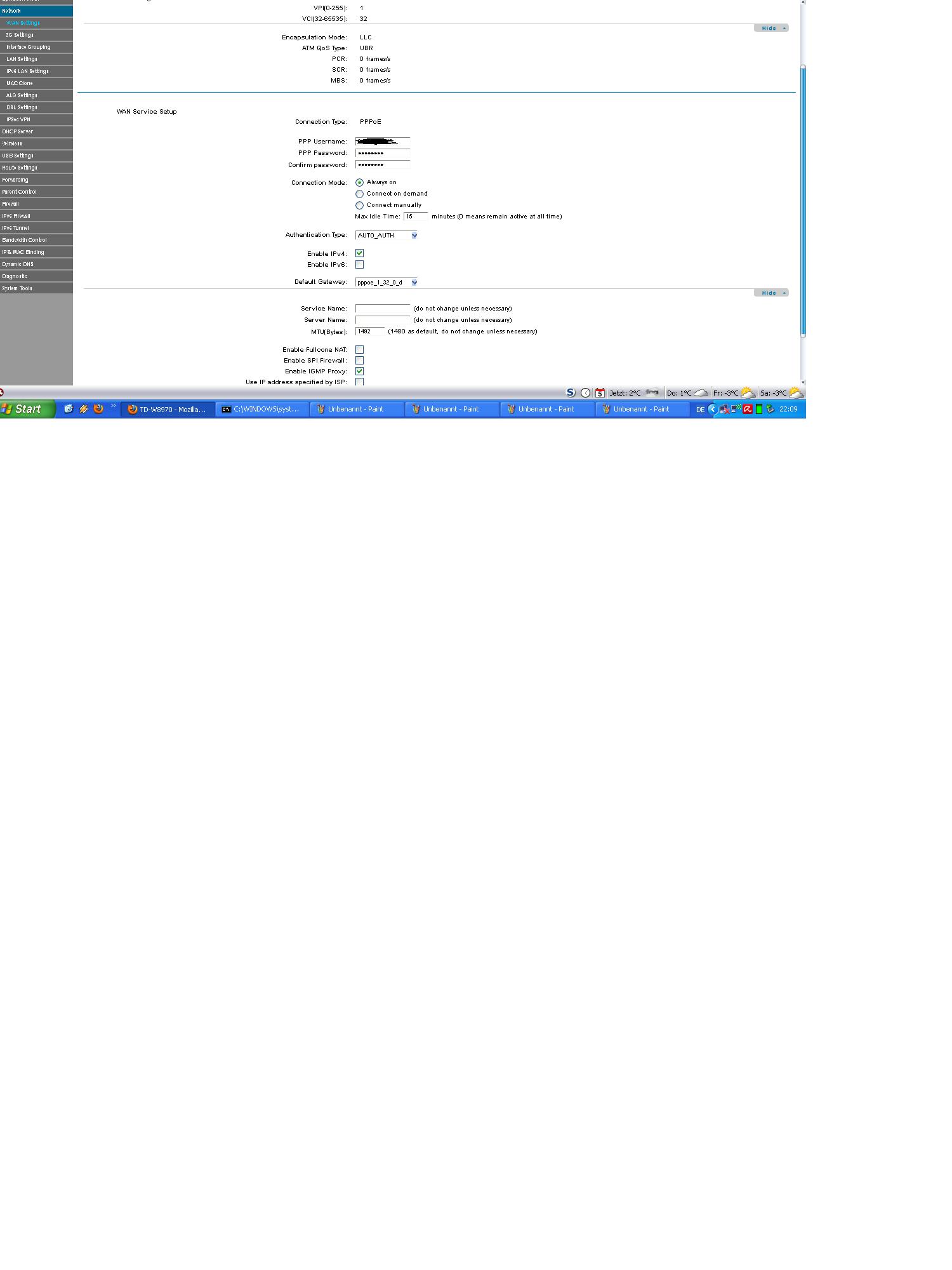 Ich verzweifle inzwischen seit 2 Stunden an der PPPOE Einwahl meines neuen ADSL 2+ Modem Router.