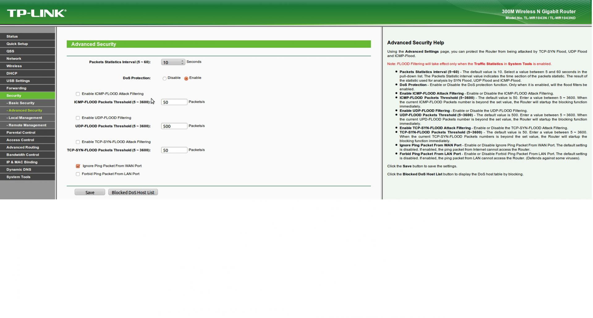 Habe selbstverständlich die SPI-Firewall aktiviert und die Internetverbindung funktioniert anstandslos. Sobald ich jedoch den DoS-Schutz aktiviere (siehe Anhang) kommt es bei größeren Downloads hin und wieder zu Einbrüchen der Downloadrate und vor allem bei Online-Spielen (vorzugsweise FPS) sind trotz einer Ping zwischen 15-30 ms deutliche Lags wahrzunehmen.
