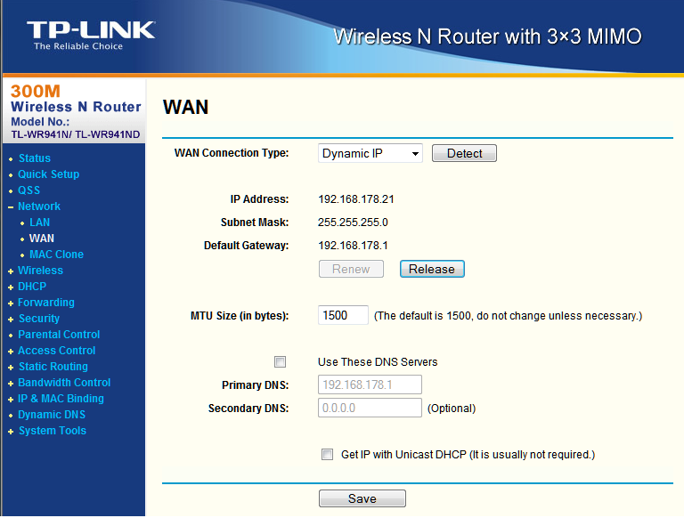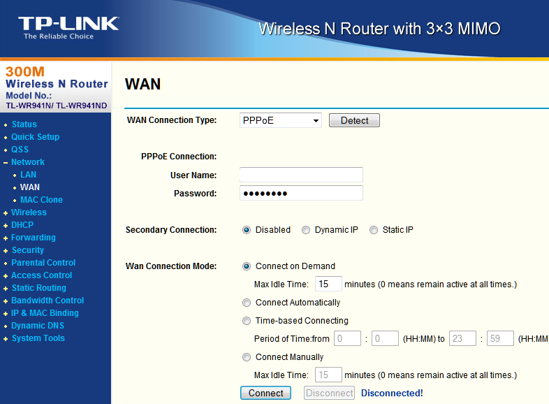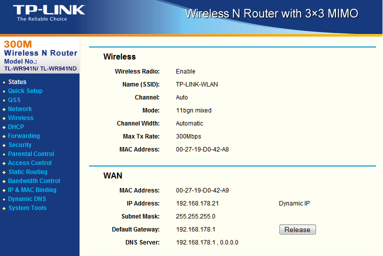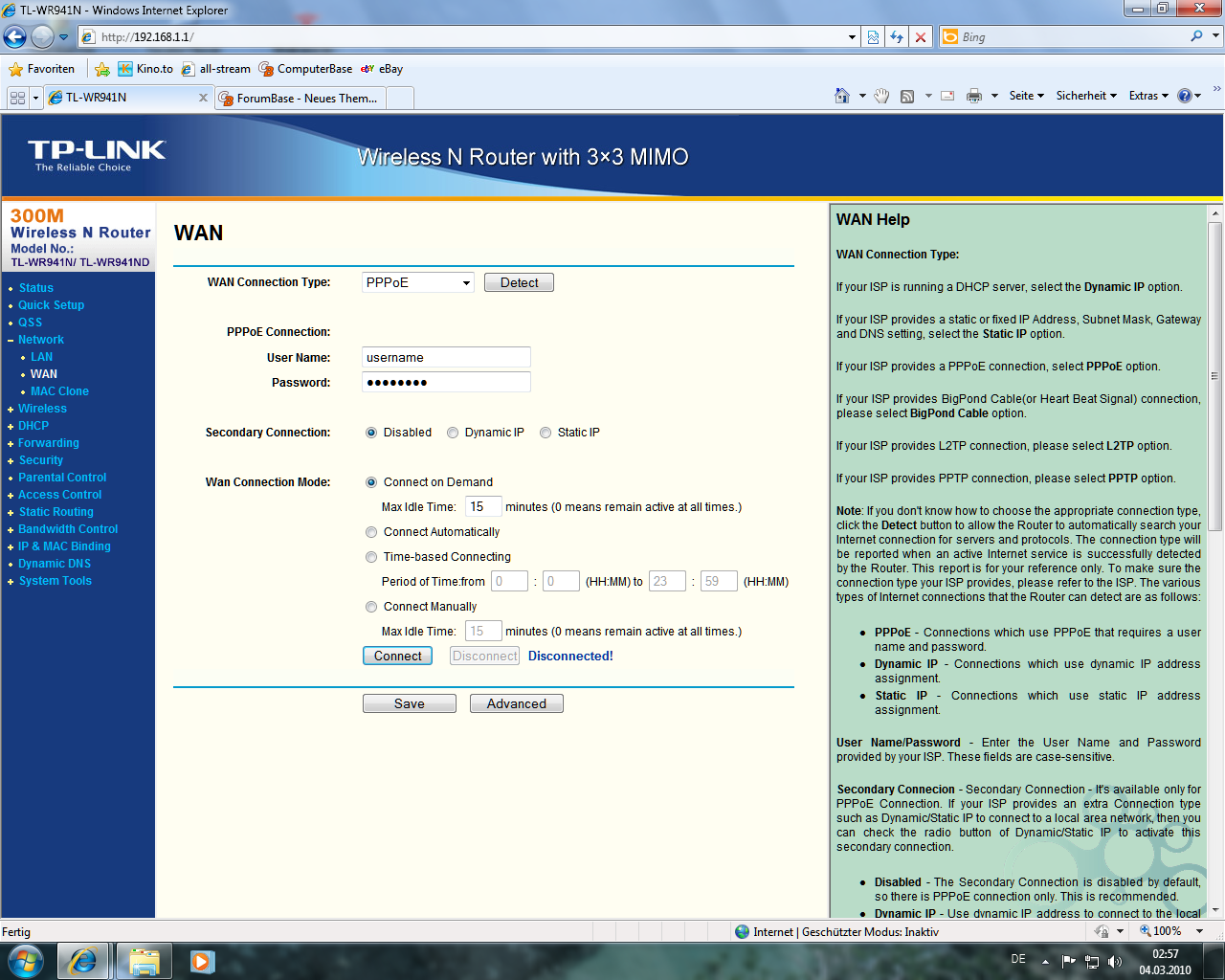 habe meine Daten in TP-LINK WR941ND eingegeben