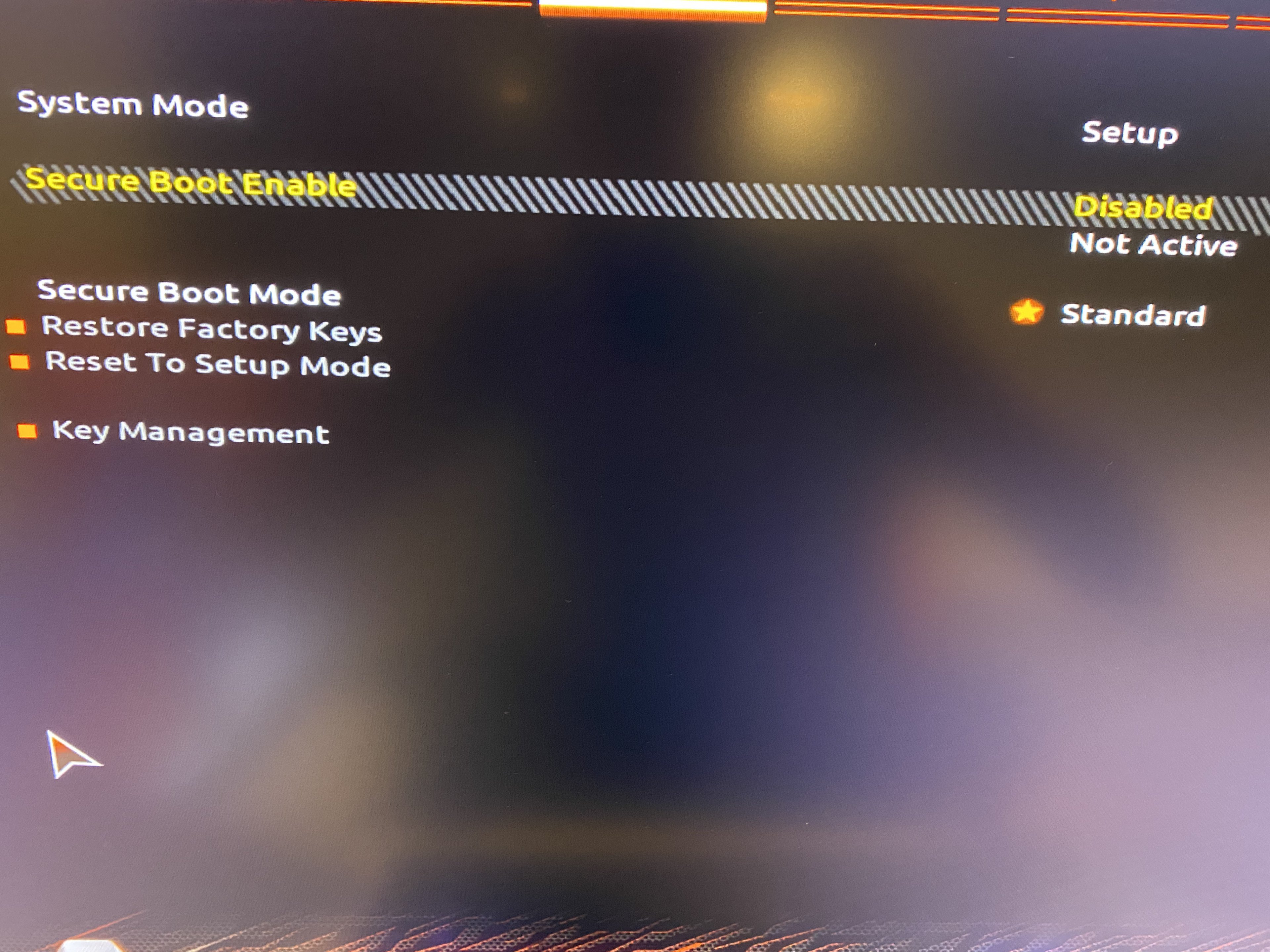 Es kommt jedes mal der Fehler: "Secure Boot can be enabled when platform is in USER MODE.