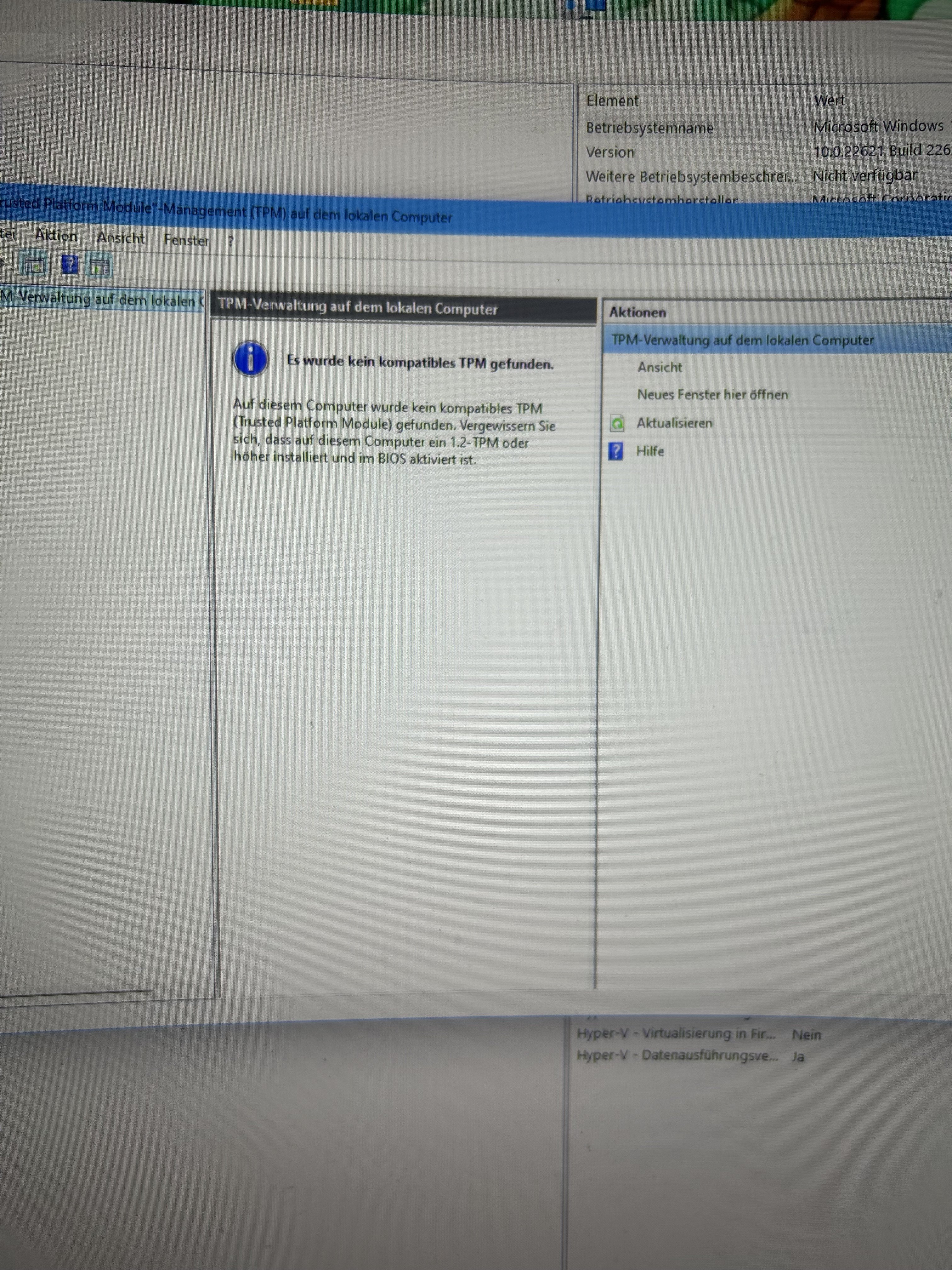 TPM 2.0 lässt sich nicht aktivieren und bekomme Warnhinweise.