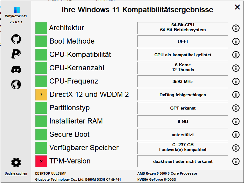 die PC-Integritätsprüfung meckert bei meinem PC über TPM. Im BIOS finde ich aber nichts dergleichen. Weiß jemand, wo das versteckt ist, oder ist mein Gerät schon so alt, dass ich es nur noch entsorgen kann wenn ich auf WIN 11 umsteigen will. Weitere Daten siehe Screenshot von whynotwin11.