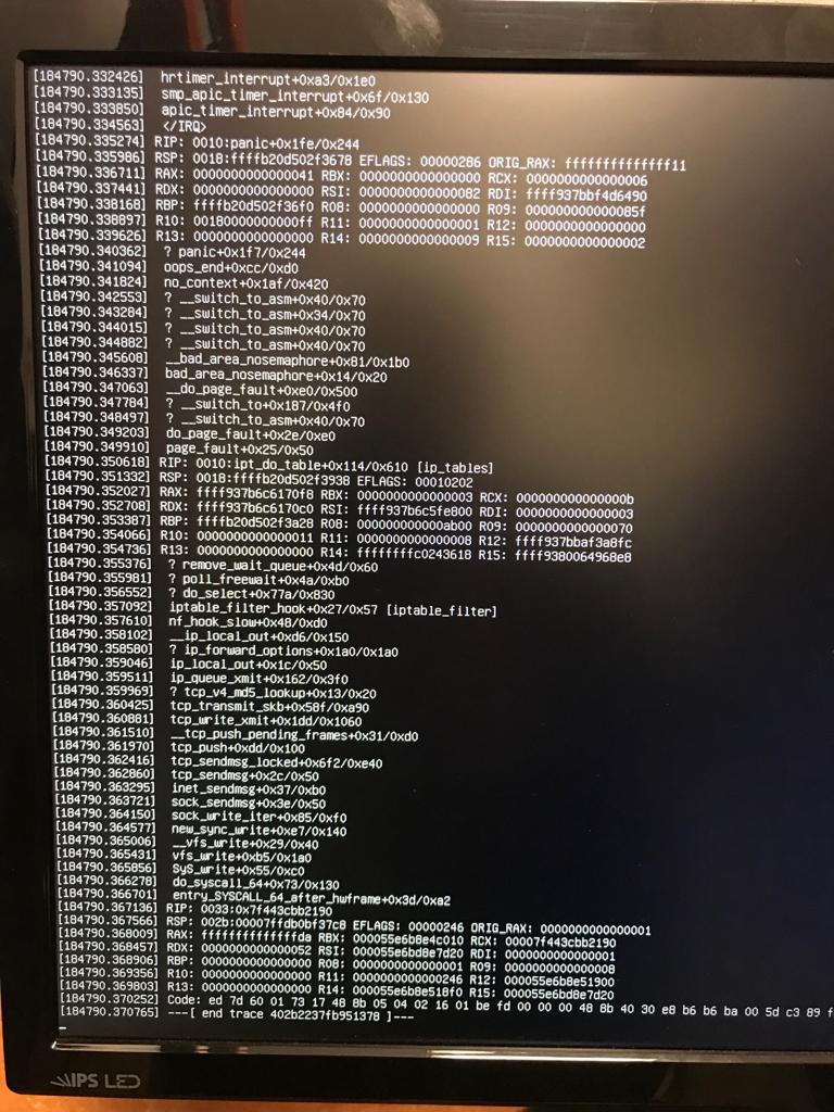 wie sagt man so schön: Man soll den Tag nicht vor dem Abend loben. Ich hatte ja wie in dem verlinkten Beitrag erwähnt ein RAM Upgrade von 64 auf 128Gb durchgeführt und seitdem die Büchse ordentlich befeuert. Heute liefen den ganzen Tag Tests und Builds und die ganzen VMs, ohne Probleme.
