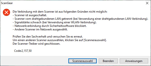 Anbei mal das Bild vom Fehler der dann 1 oder 2 Vorgängen auftritt (in diesem Fall nach dem Scannen: 1 mal gescannt, beim 2. Versuch direkt Fehler)