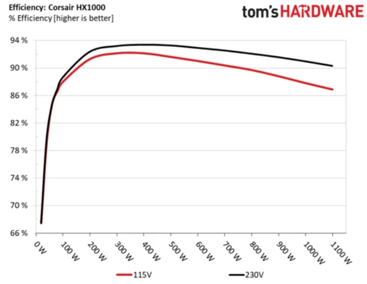 Wenn wir uns die Effizienzkurve des HX1000 ansehen -