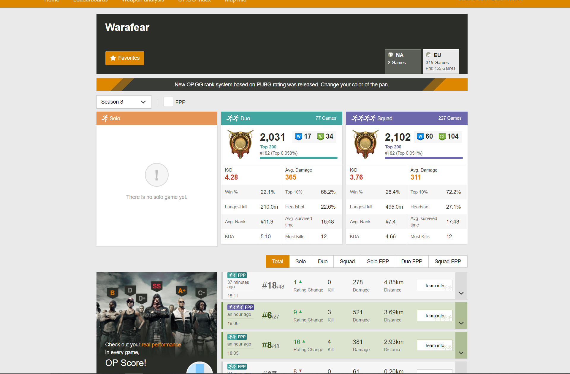 Mit meinen mittlerweile fast 1000 Stunden und top 200 in duo und squad auf dem EU Server komme ich immer wieder zu dem Schluss, dass es vor allem die schlechteren und inaktiveren Spieler sind, die sich immer wieder beschweren und ganz ehrlich, wie schon viele Vorredner hier geschrieben haben, das Spiel hat sich eklatant verbessert! Es gibt selbstverständlich immer noch große Probleme, vor allem bei der Hit reg, was aber eben mit dem System zusammenhängt, wie diese Zustande kommt und einhergehend damit kommt das Problem mit High ping players, welches für mich das größte Problem des Spiels darstellt. Hier hilft auch der so oft geforderte Region lock China nichts, was viel eher hilft wäre ein ping maximum für einen Server oder im drastischsten Fall einfach das Best ping Prinzip anwenden, womit man auf dem für einen selber oder das squad als ganzes besten Server landet. Aber erstmal die fix pubg Kampagne abwarten und nicht vergessen, es ist nur ein game