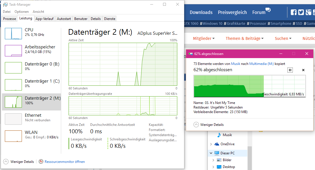 ich habe diese Festplatte heute erhalten und in dieses Festplattengehäuse eingebaut und versucht heute meine Daten darauf zu kopieren. Nach weniger als 2 Sekunden sinkt die Datentransferrate auf exakt 0. Dann dauert es fast 2 Minuten bis sie wieder auf den vollen Wert ansteigt. Dann passiert dasselbe. Weiß jemand, woran das liegen könnte? :-/