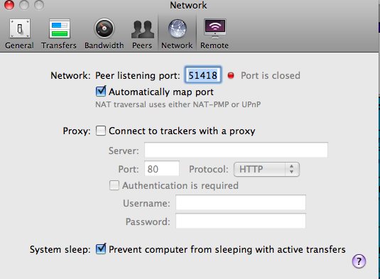 Leider kommt im Menue von Transmission ständig, dass der Port closed ist. Siehe Anhang 2