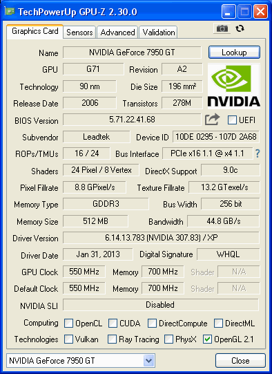 | 1366 x 768 | 0 | High | High | Trilinear | 4x | enabled | enabled | enabled | enabled | ||