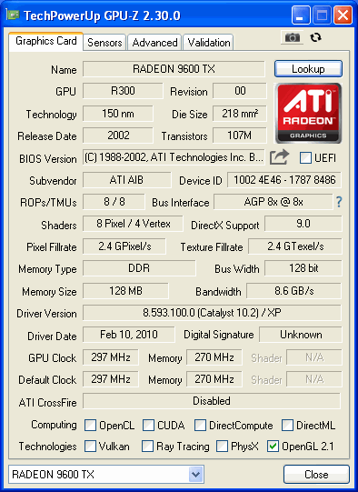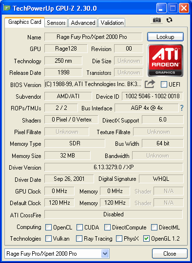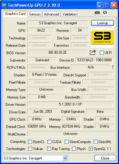 | 3DMark 2001 SE | 1024 x 768 | 32 Bit | - | - |