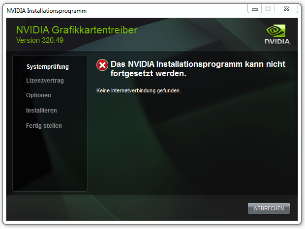 habe gerade versucht diesen Treiber 320.49 zu installieren aber da ich auf dem PC kein Internet habe geht das nicht. Muß ich jetzt einen älteren installieren oder geht das auch irgendwie ohne Internet? Seit wann wird ein Internet vorausgesetzt wenn ich einen Grafiktreiber installieren möchte...