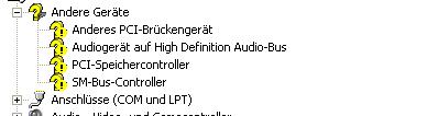 1. Es ist so das ich die Treiber für das Netzwerk-, Aduio-, ... System einzelnt installieren muss. Kein ding. Aber leider weiß ich nicht, welche ich alle brauche, denn ich sehe zb. im Geräte-manger noch "Andere Geräte", wo ein Fragezeichendrauf ist. Z.B. ganz viele Controller. (?)