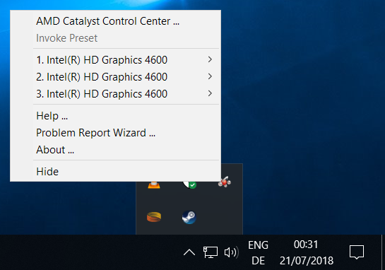 Mittels Rechtsklick sehe ich dann ein Menü wo die die Display-Ausgänage (2x DP und 1x VGA) ansteuern kann: