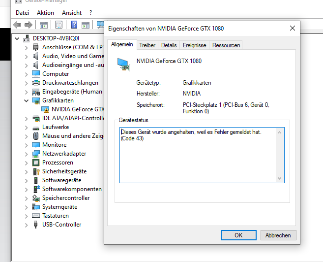 Im.Gerätemanager steht das Gerät wurde angehalten fehler 43.